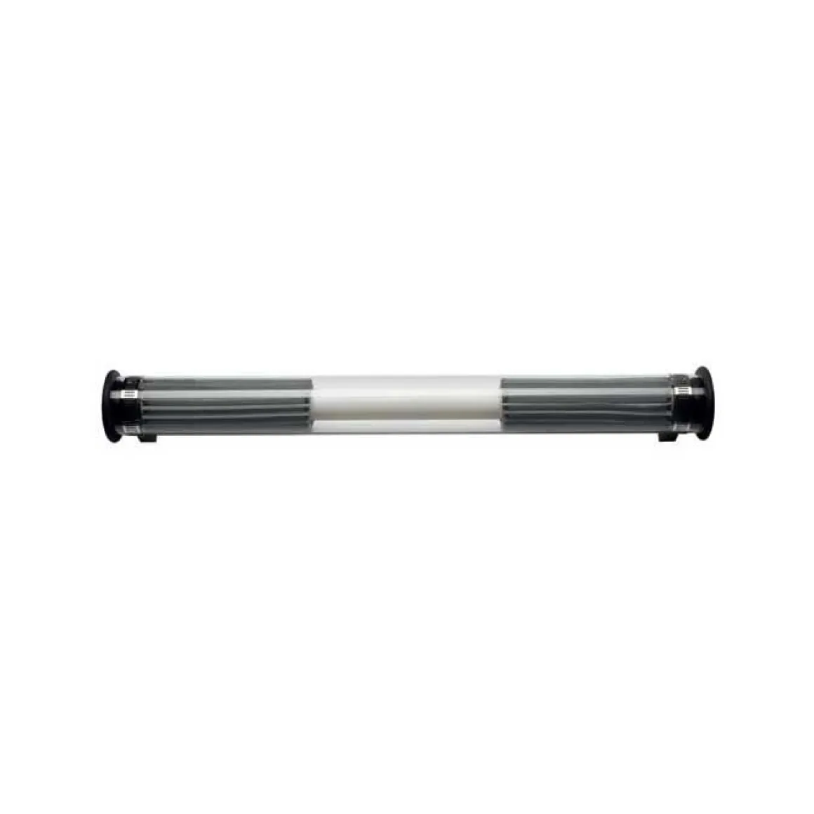 Matériaux : tube en verre borosilicate, bouchon étanche silicone et fonte d’aluminium noir et collier de fixation et visserie en acier inoxydable.