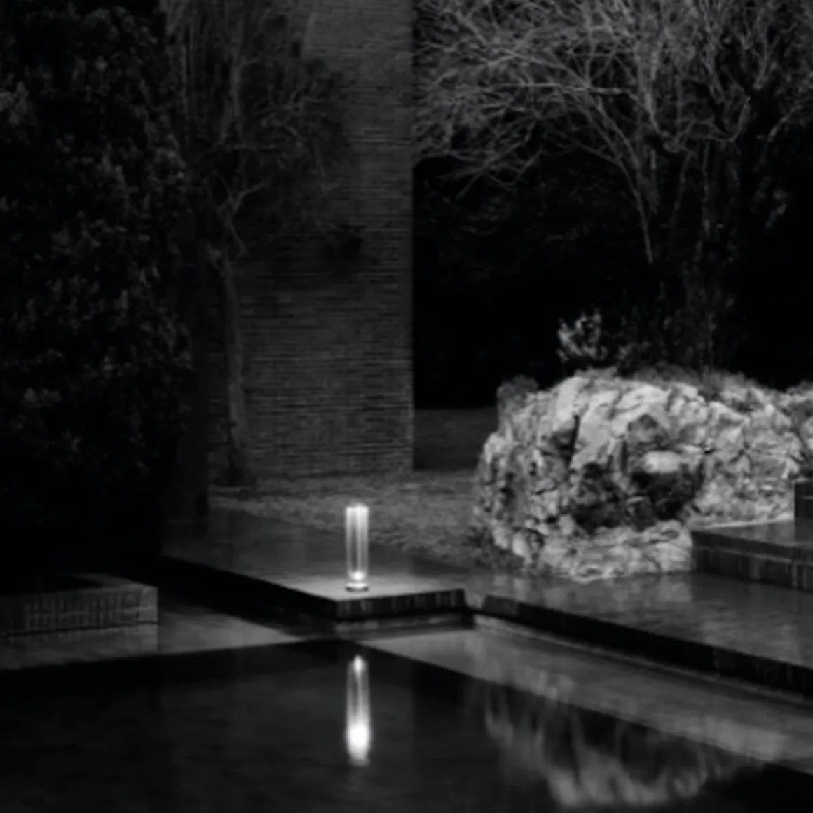 Lampe à poser extérieure In Vitro Bollard 1 de Flos par Philipp Starck.