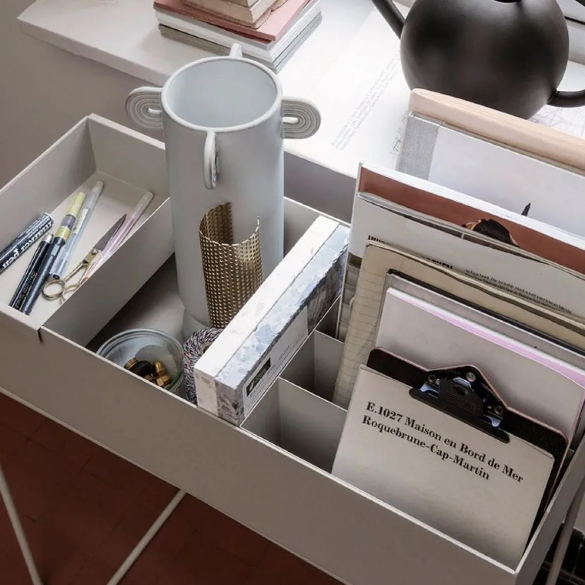 Élégante et intemporelle, cette boîte sur ses pieds délicats et fin en métal enduit de poudre peut être utilisée pour tout, des plantes aux livres ou aux jouets pour enfants, partout dans la maison. Vous pouvez même l ‘utiliser comme séparateur, pour créer de petites « îles » paisibles ou des coins confortables dans des pièces plus grandes.