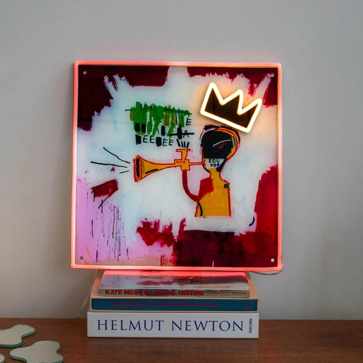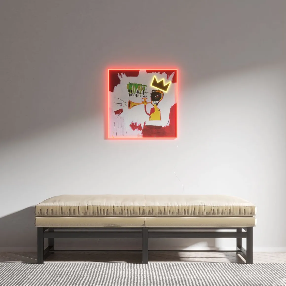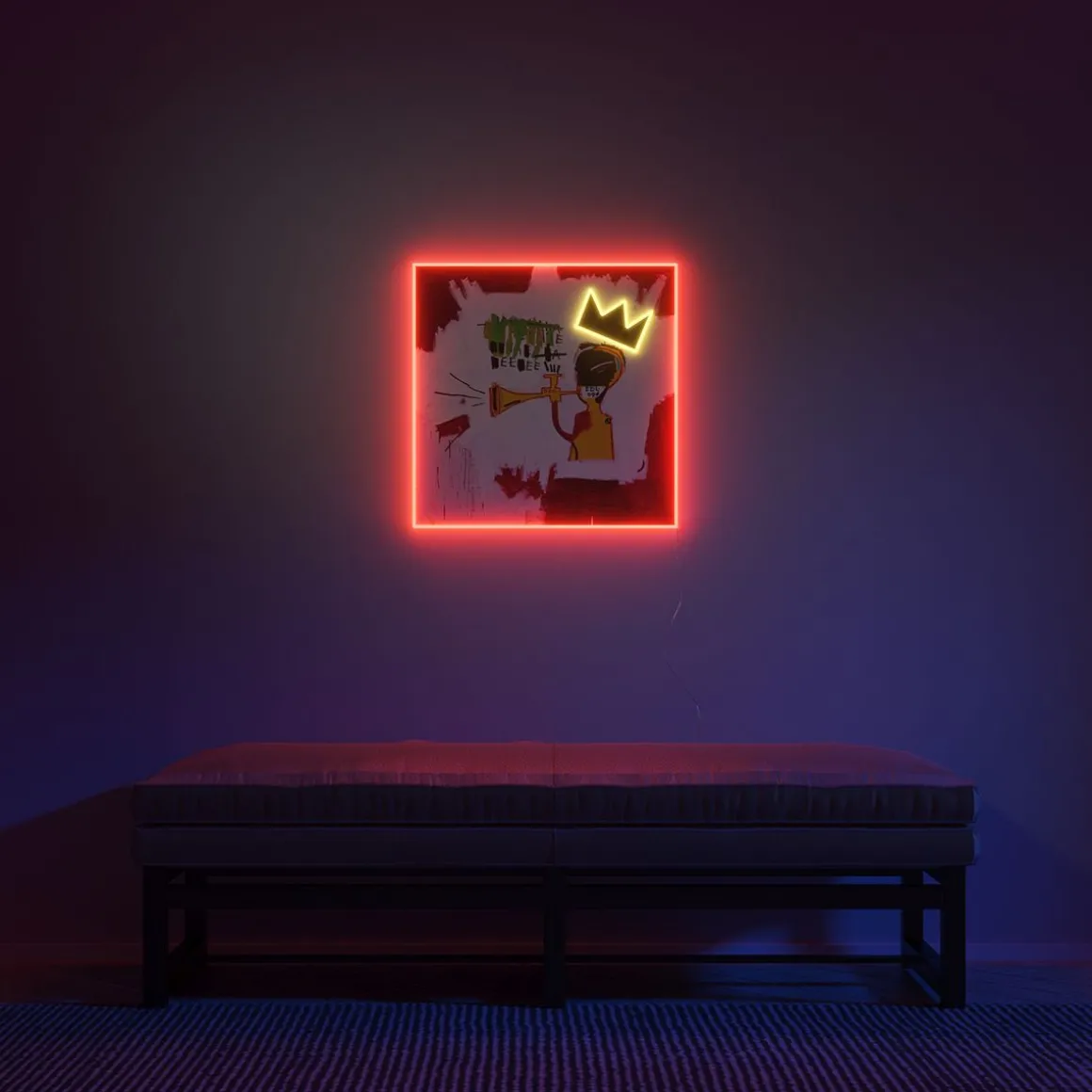 Voici l’enseigne lumineuse LED « Trumpet » de Yellowpop, un hommage visuellement saisissant au chef-d’œuvre de Basquiat de 1984, imprégné de l’âme rythmique du jazz. Cette peinture représente un trompettiste portant l’une des couronnes emblématiques de Basquiat, placée de biais comme si la force de la musique la poussait hors de la tête du joueur. Des lettres noires tracées au pinceau émanent de l’instrument, capturant le son audacieux de la musique. Éclairer votre espace avec cette œuvre revient à jouer une symphonie de lumière, où les couleurs vives et l’imagerie frappante créent une ambiance d’inspiration et d’autonomisation. L’enseigne n’est pas seulement un hommage à la déclaration de présence de Basquiat dans le monde de l’art ; c’est un phare qui fait écho à son message : une arrivée qui ne peut être ignorée, un héritage qui est là pour durer. C’est le complément parfait pour tout espace qui célèbre la profondeur culturelle, le dynamisme personnel et l’esprit éternel du jazz.