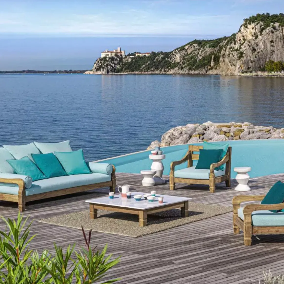 Matériaux : éco-teck et marbre blanc de Carrare