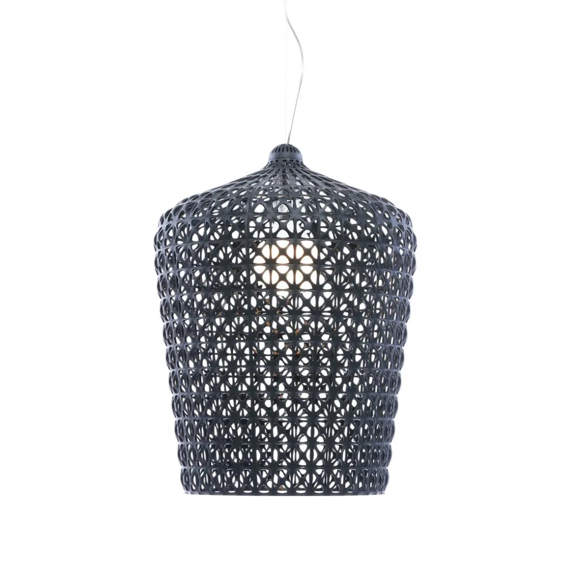 La suspension Kabuki peut interpeller par sa légéreté tant au niveau du design que de la matiére, qui arrive à créer un effet de masse, d’une pièce maitresse de décoration tout en gardant une transparence étonnante à votre source de lumiére. La lampe Kabuki est réalisé par injection. Le raffinement de la technologie par injection utilisée permet d’obtenir une structure tramée reproduisant la dentelle grâce à une surface ajourée particulière diffusant la lumière.