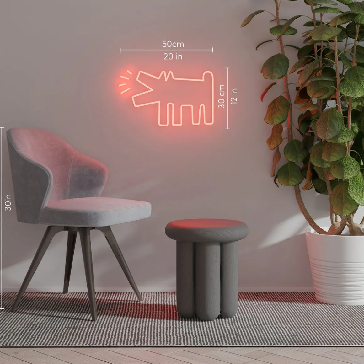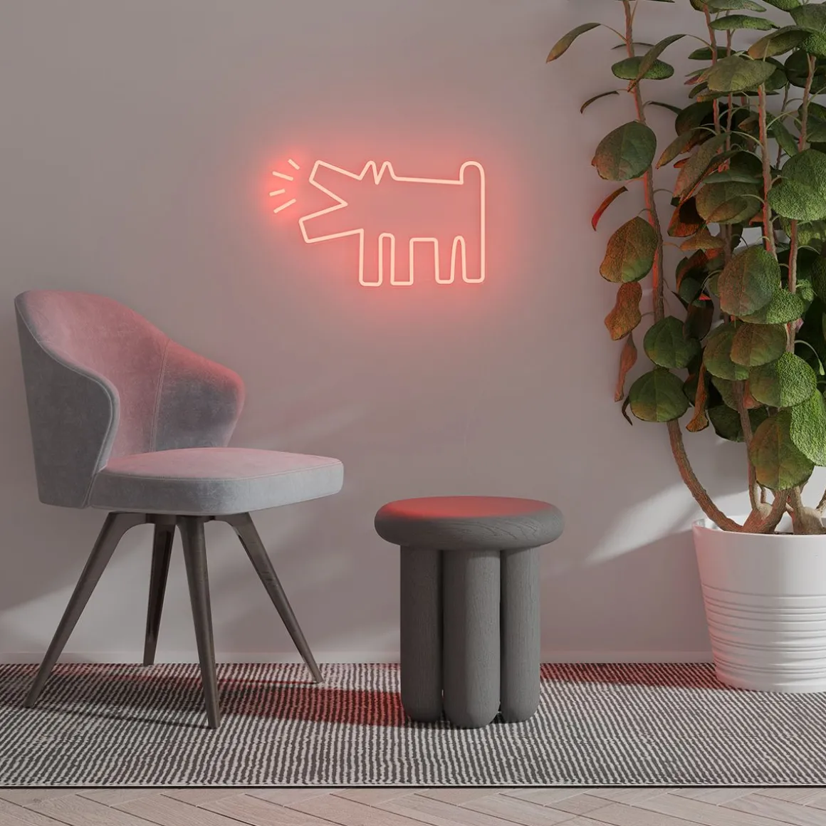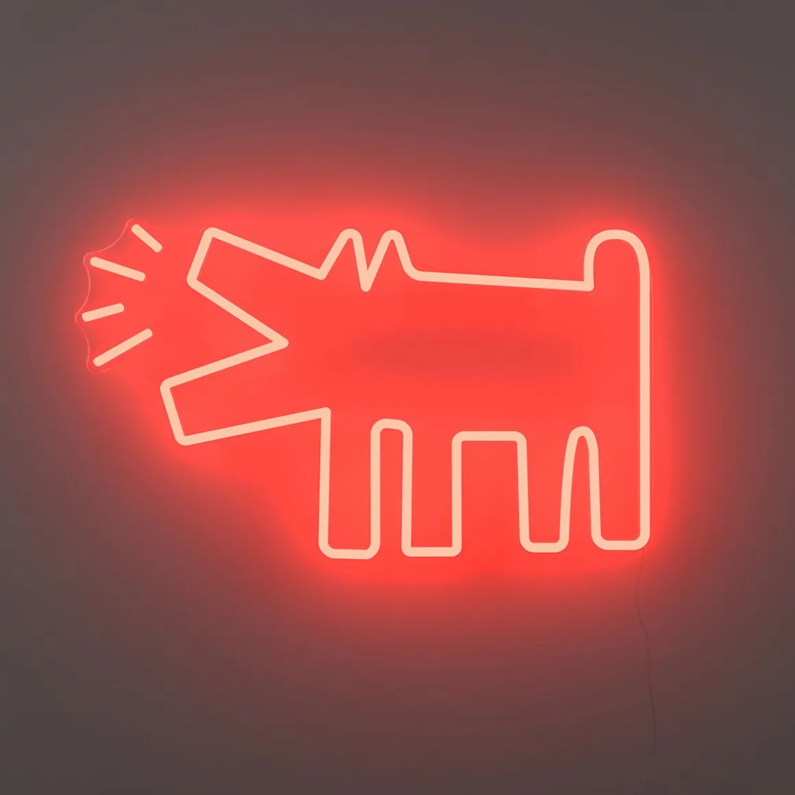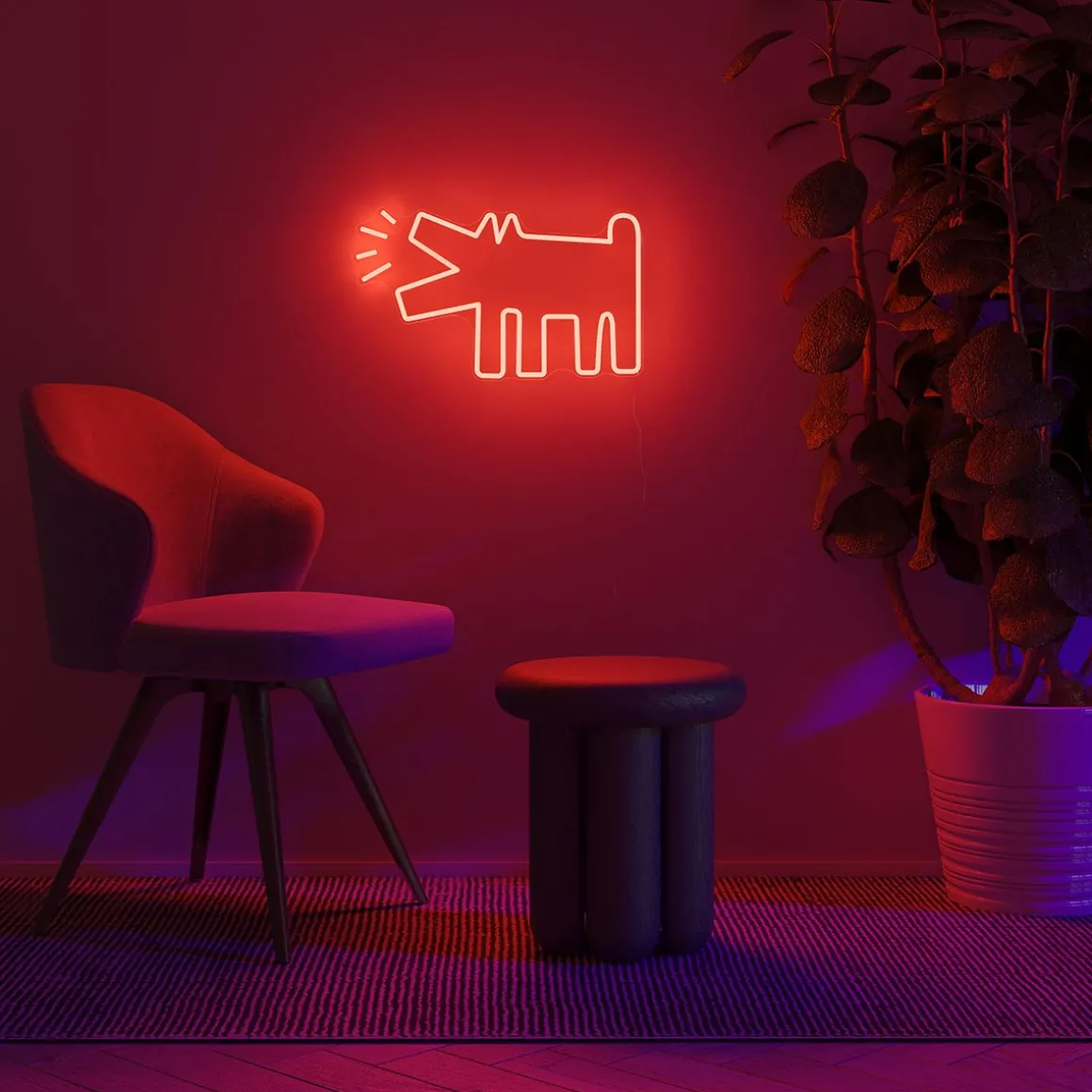 Cette oeuvre en néon LED réimagine l’une des icônes colorées et animées de Keith Haring en la transformant en une oeubre unique pour votre intérieur. Conçue exclusivement pour la collaboration Yellowpop x Keith Haring, Barking Dog est composée de lumières LED, qui peuvent être intensifiées, ajustées ou complètement éteintes – comme aucun autre chien aboyant.