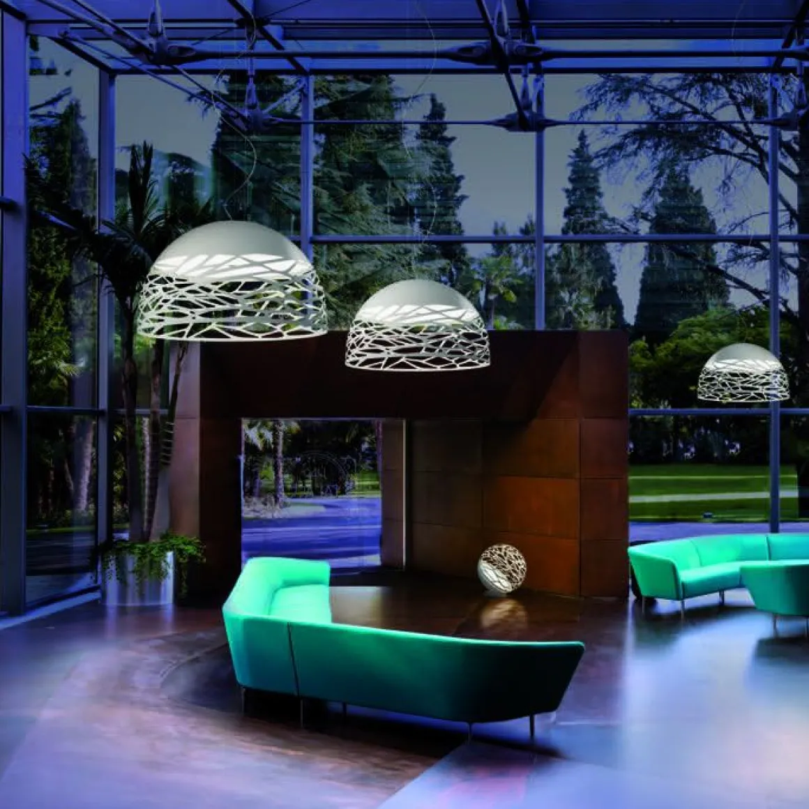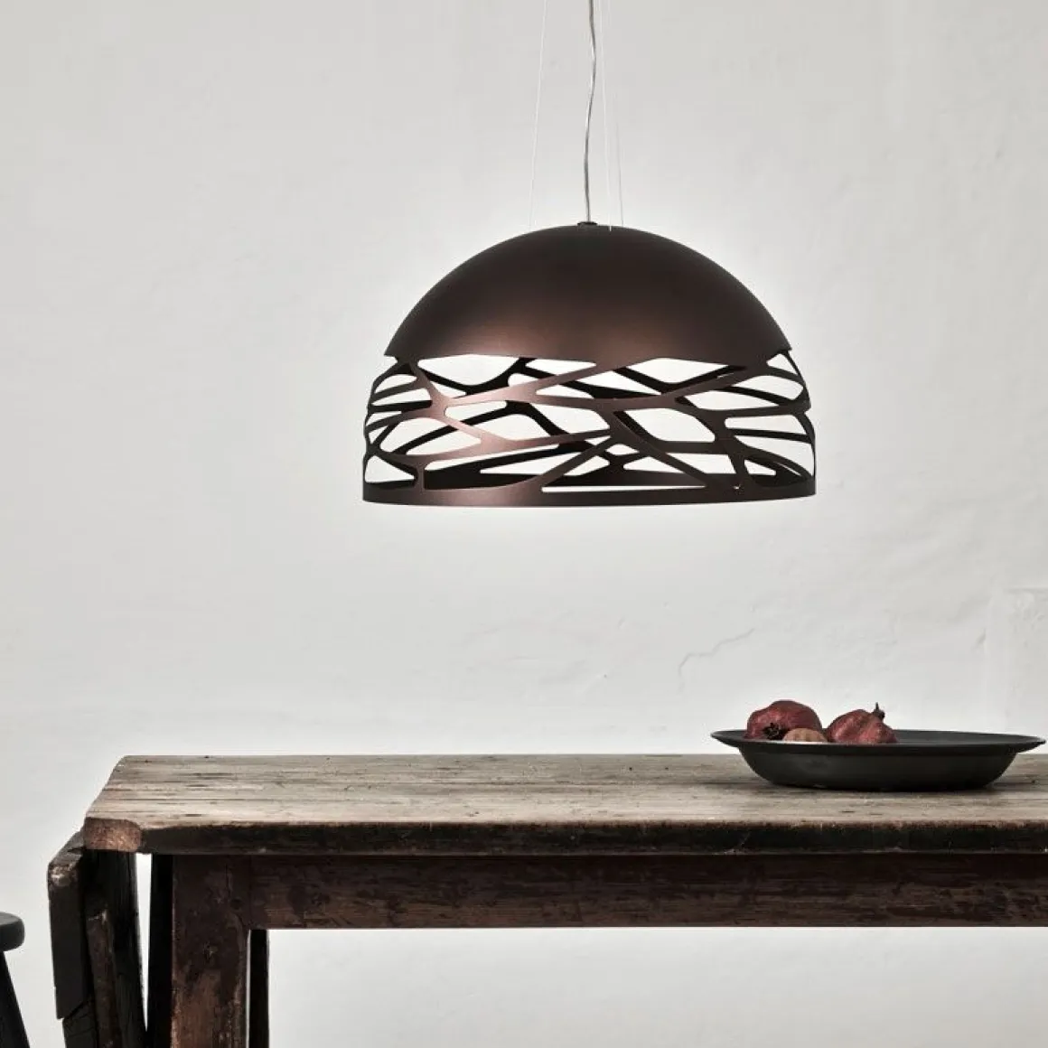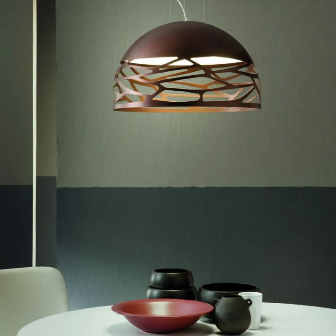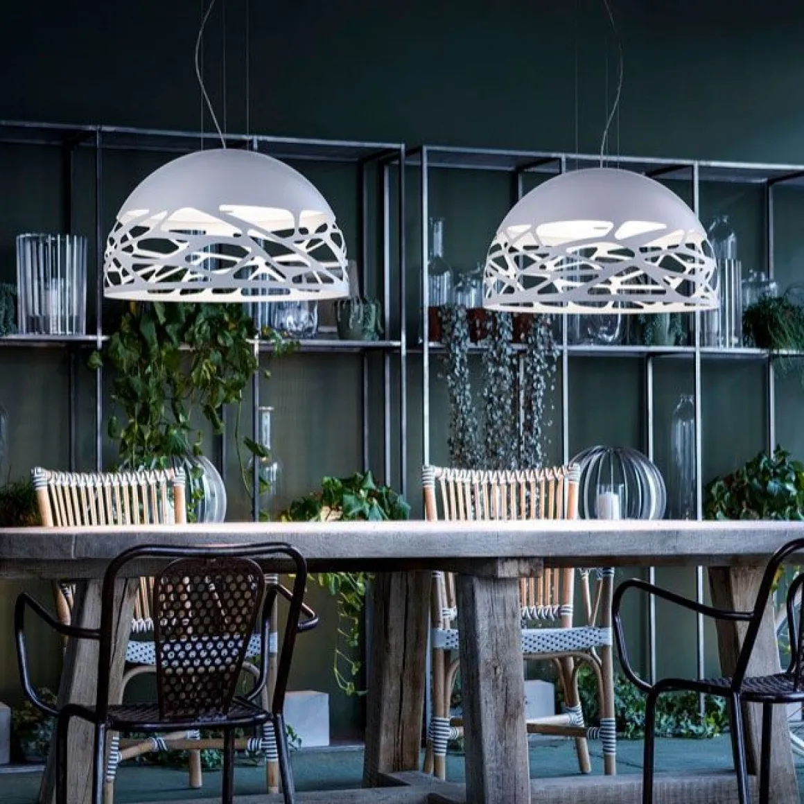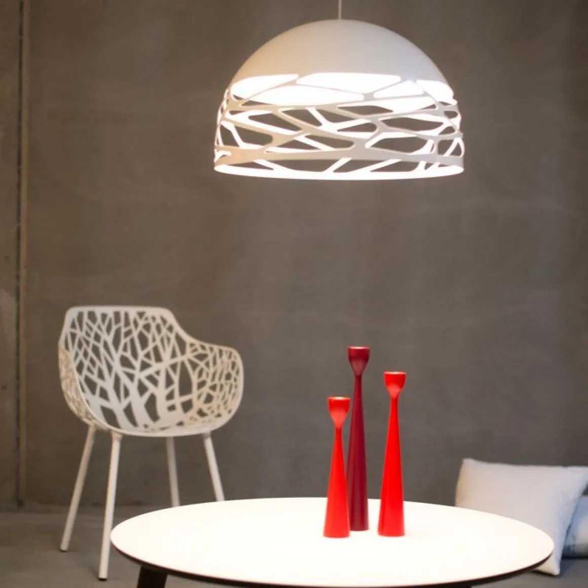 Suspension Kelly Dome, créé en 2012 par le designer Andrea Tosetto. La découpe au laser permet un accès complet à la source lumineuse créant des effets et des tons clairs intrigants et précieux, avec son design simple et intemporel, Kelly est déjà devenu un must pour Studio Italia Design.