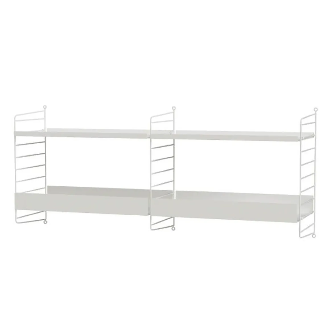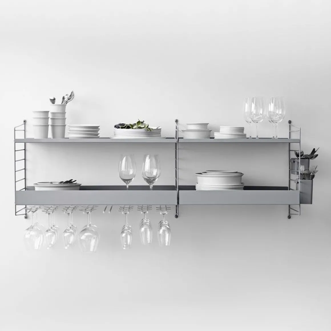 Cette combinaison murale en deux parties avec étagères en métal est parfaite pour ranger les ustensiles de cuisine. C’est une excellente combinaison pour commencer et au fur et à mesure que le temps passe et que votre collection de gadgets de cuisine s’agrandit, vous pouvez ajouter des accessoires pour augmenter les possibilités de stockage.