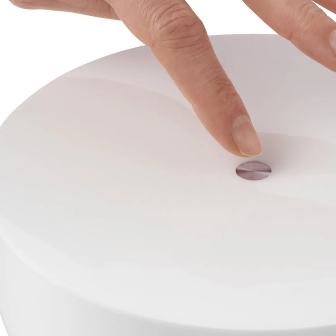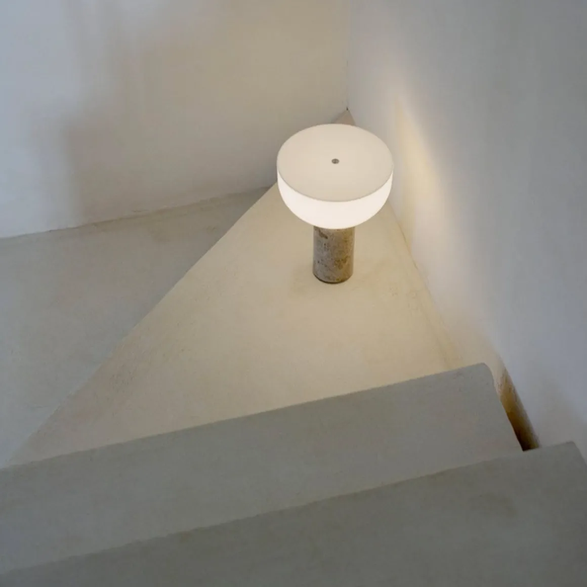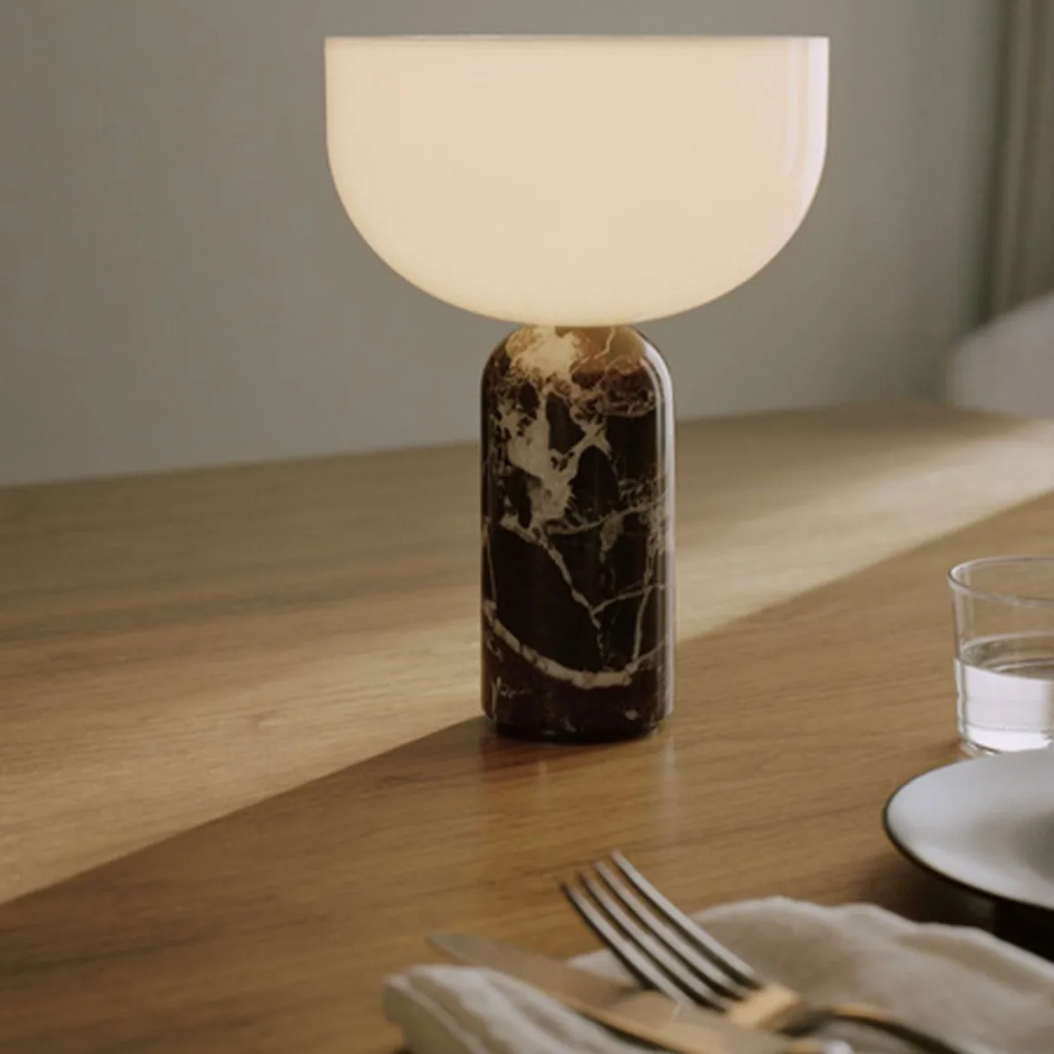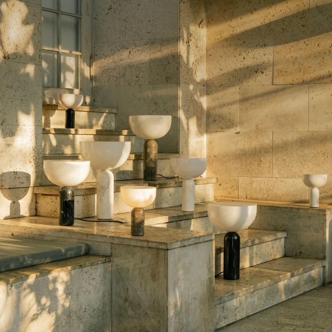 Kizu de New Works par Lars Tornoe. Équilibrant des formes audacieuses, la lampe de table Kizu intrigue l’œil avec sa composition sculpturale, et cette version portable de la lampe ne fait pas exception. Les matériaux et l’expression sont tels que nous les connaissons, mais cette petite taille sans fil est facile à déplacer là où la lumière est nécessaire. Avec le marbre comme élément porteur, la lampe obtient une stabilité naturelle et la pierre polie est agréable au toucher. Comme la lumière se propage de toute la partie supérieure de la lampe, la petite lampe de table offre un rendement lumineux élevé. Un cercle en métal fraisé tourné sur le dessus de la lampe ajoute un détail raffiné au design, et en tapotant doucement sur le cercle, la lumière peut être atténuée à trois niveaux différents. La lampe de table portable Kizu a une autonomie de 10 heures à un réglage d’éclairage de 100 % et est chargée avec un câble USB-C.