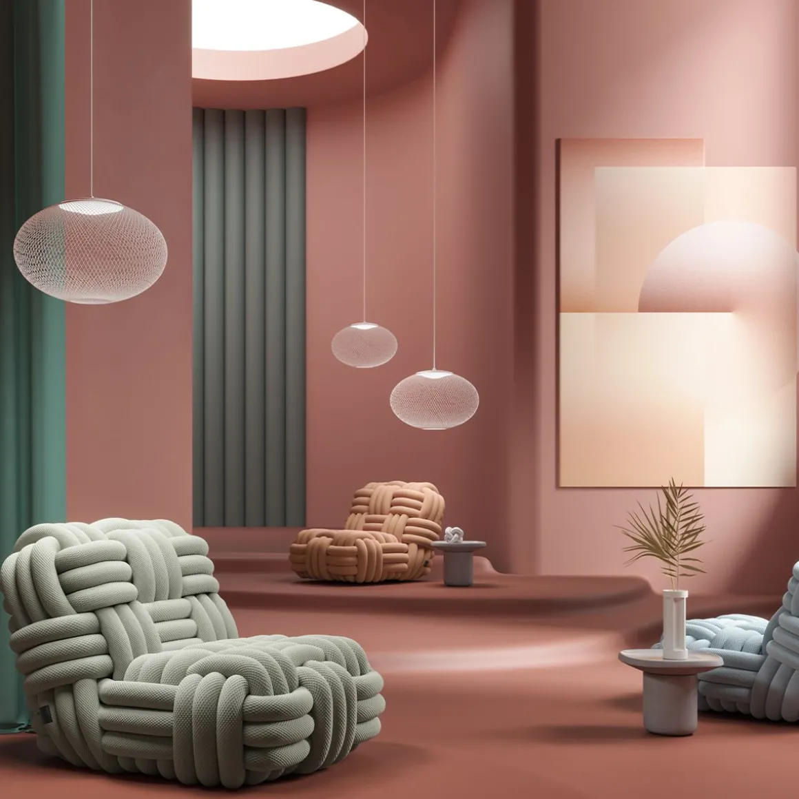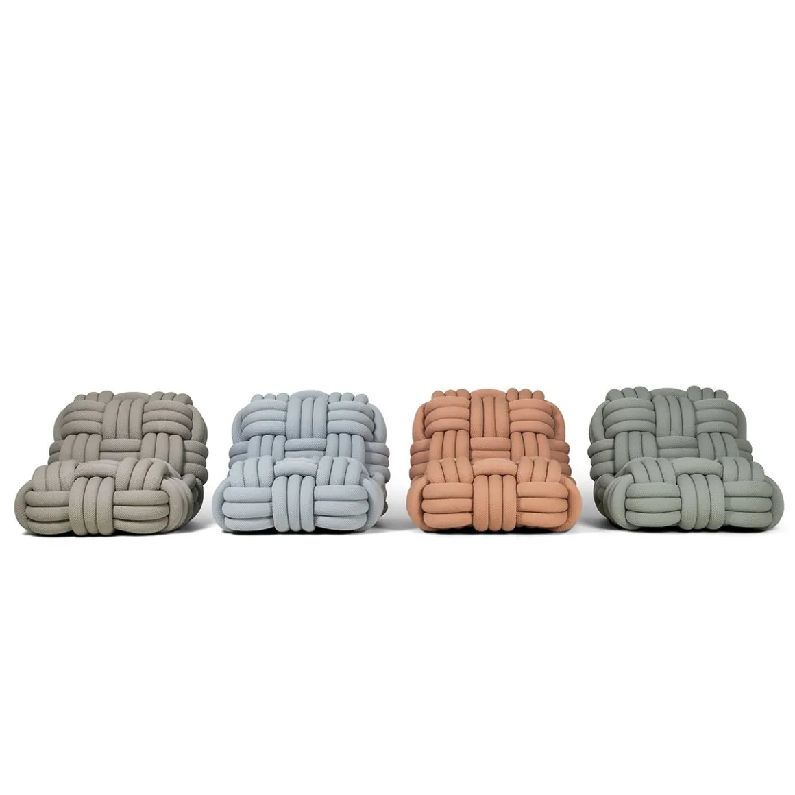 Offrez-vous une détente ultime avec la chaise longue Knitty de Nika Zupanc. Cette chaise longue plus grande que nature est un véritable sujet de conversation dans votre maison. Un accroche-regard fabriqué avec un «fil» extra-large qui ressemble à des cordes de bateau géantes. Le design de la chaise est encore amélioré avec un tissu tricoté, disponible en 15 couleurs, qui présente un motif de losanges matelassé. Autour d’une base solide, le fil est tissé dans une grosse armure de panier, offrant une sensation tactile inégalée. La combinaison unique d’échelle et de douceur de la chaise longue Knitty vous fera vous blottir avec votre livre ou série préféré et vous laissera aller à une relaxation ultime. Configurez la chaise longue Knitty dans la couleur de votre choix avec le configurateur en ligne et découvrez à quoi elle ressemble dans votre maison avec AR !