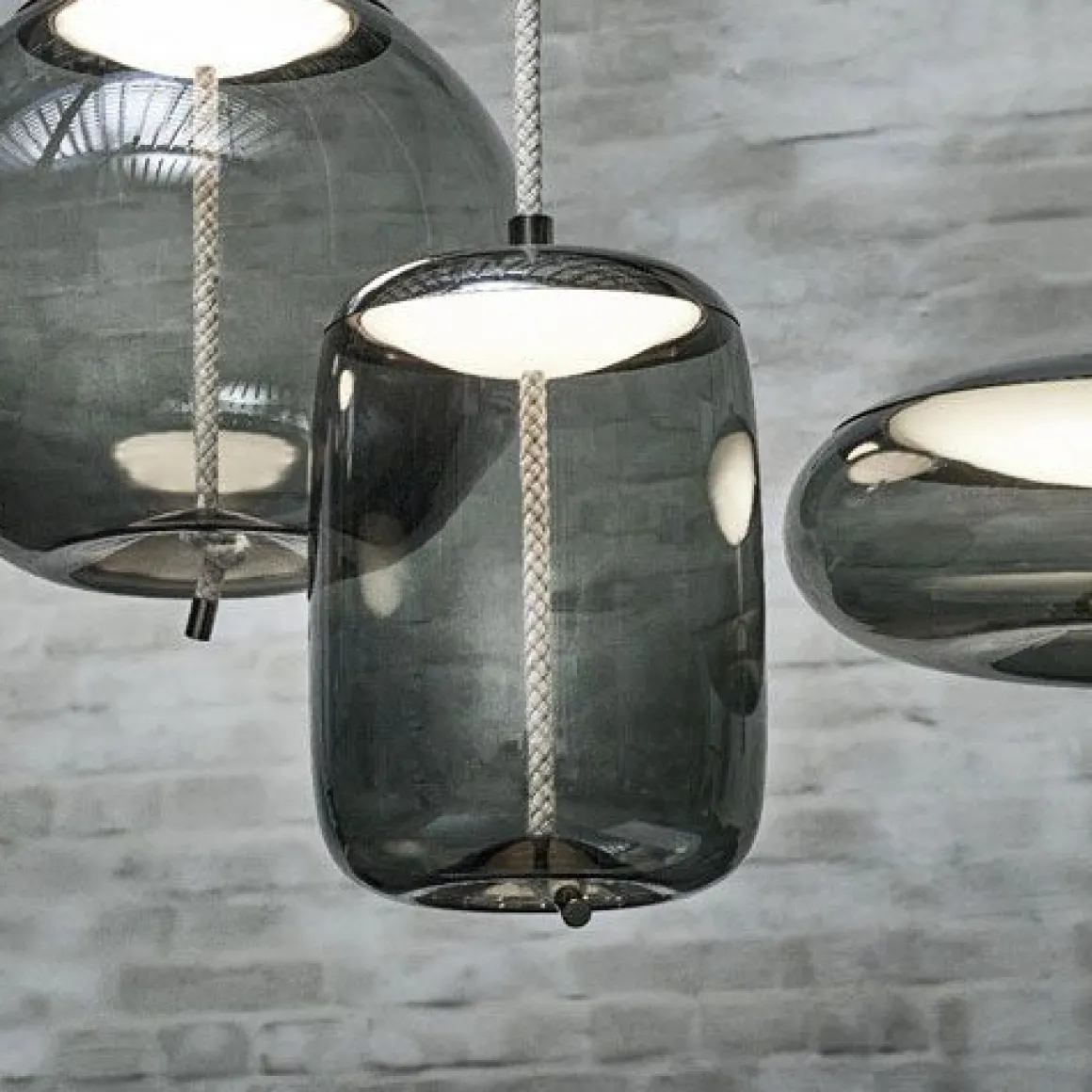 KNOT est une collection de lampes à suspendre majestueuses dans laquelle se confrontent deux matériaux différents, deux principes différents – la douceur des courbes arrondies du verre soufflé transparent et l’austérité d’un câble écru tendu. Le design résultant est à la fois surprenant, rectiligne et digne. Les formes pleines et arrondies des différentes proportions sont tranchées par un câble robuste qui semble déformer le fond en verre et créer ainsi un effet de plasticité et d’élasticité. Le nœud qui se trouve à l’extrémité du câble est l’élément artistique caractéristique du concept. La source de lumière LED est recouverte d’un capot métallique et elle est protégée par le bas par un diffuseur en verre opale soufflé à la main. Un autre composant métallique a été utilisé pour réaliser l’embout du câble. Les lampes de la collection Knot pourront être installées aussi bien dans des intérieurs privés que publics et ce, pas uniquement au-dessus de tables de salles à manger. Cette collection se compose de quatre lampes à suspendre et de diverses variations de couleurs.