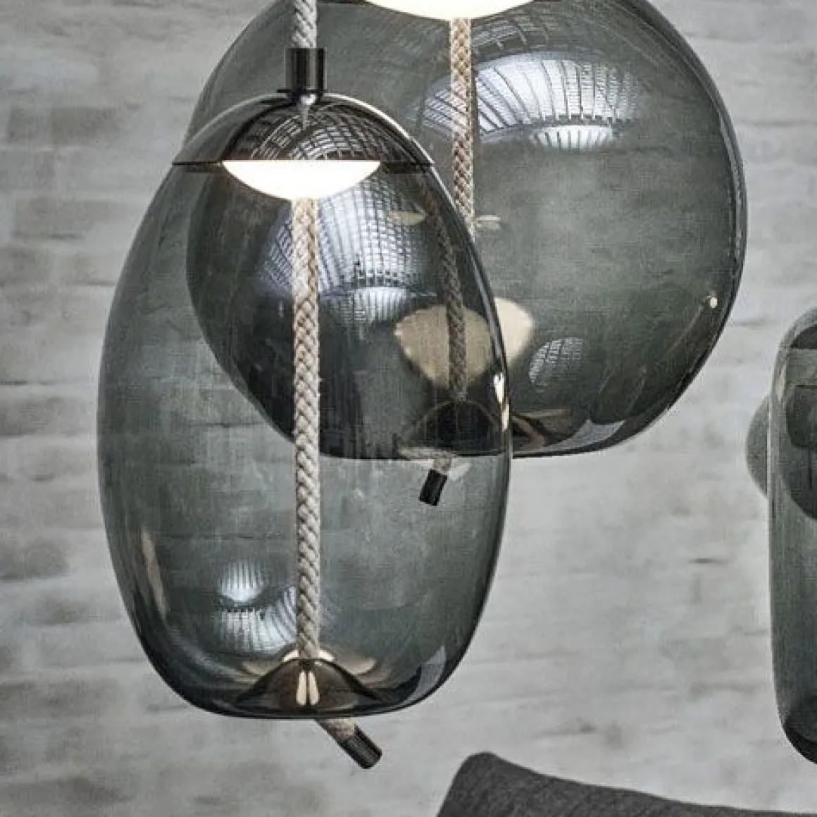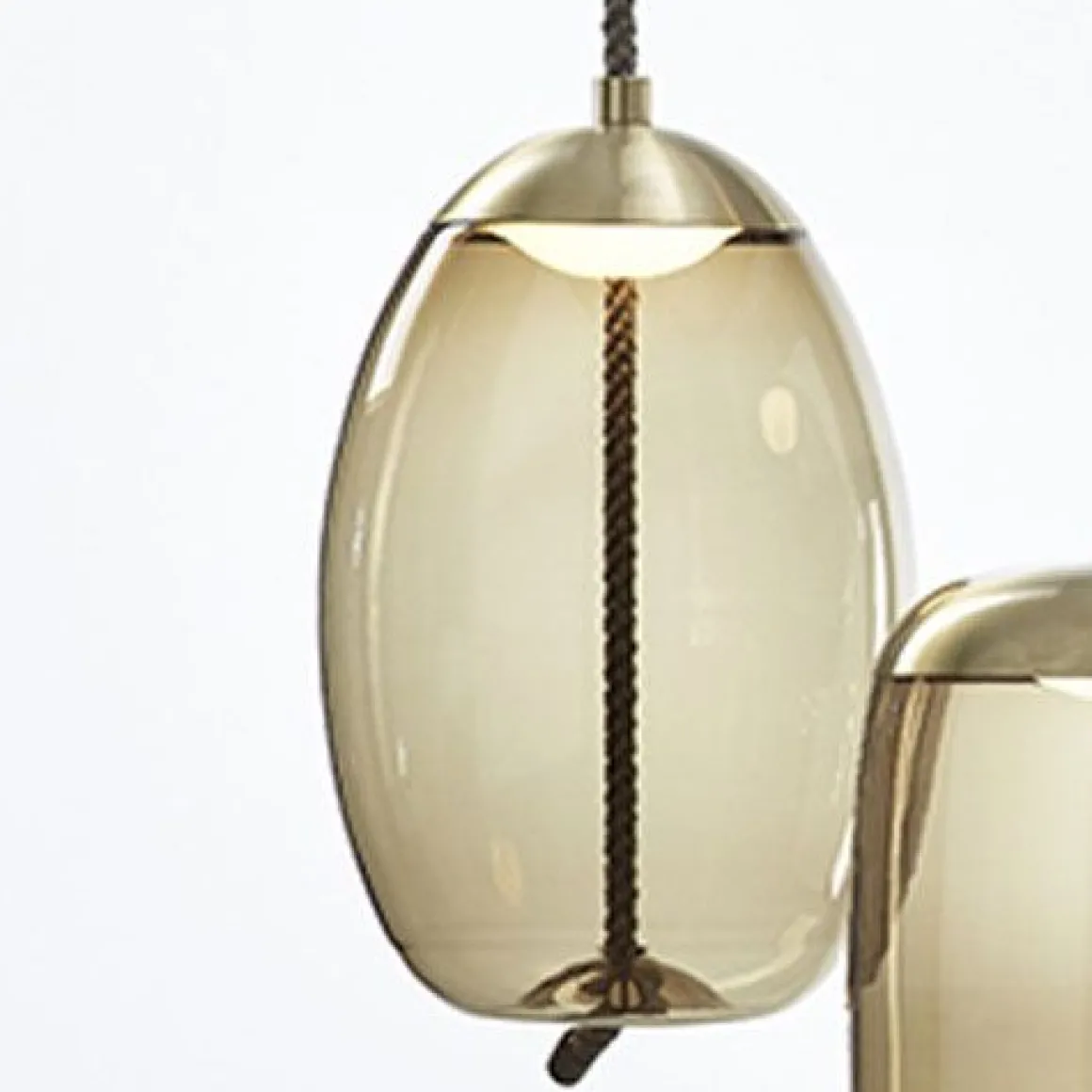 KNOT est une collection de lampes à suspendre majestueuses dans laquelle se confrontent deux matériaux différents, deux principes différents – la douceur des courbes arrondies du verre soufflé transparent et l’austérité d’un câble écru tendu. Le design résultant est à la fois surprenant, rectiligne et digne. Les formes pleines et arrondies des différentes proportions sont tranchées par un câble robuste qui semble déformer le fond en verre et créer ainsi un effet de plasticité et d’élasticité. Le nœud qui se trouve à l’extrémité du câble est l’élément artistique caractéristique du concept. La source de lumière LED est recouverte d’un capot métallique et elle est protégée par le bas par un diffuseur en verre opale soufflé à la main. Un autre composant métallique a été utilisé pour réaliser l’embout du câble. Les lampes de la collection Knot pourront être installées aussi bien dans des intérieurs privés que publics et ce, pas uniquement au-dessus de tables de salles à manger. Cette collection se compose de quatre lampes à suspendre et de diverses variations de couleurs.