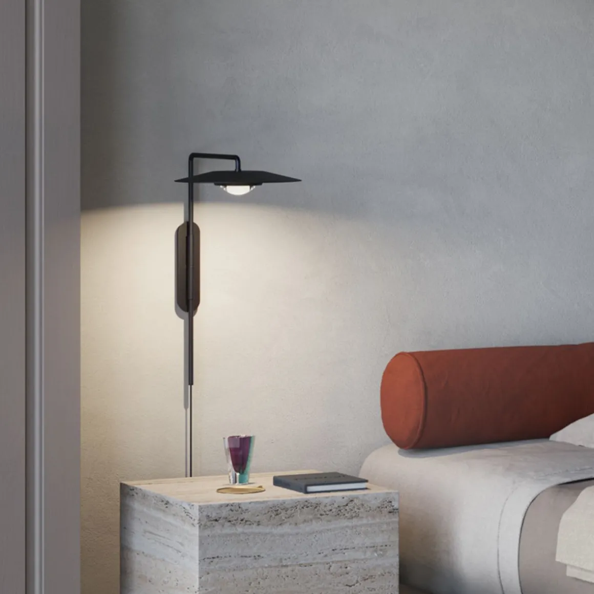 La famille de lampes Koinè conçue par Mandalaki Studio pour Luceplan s’agrandit. La nouvelle version murale avec fixation par prise présente une structure composée d’une tige fine (8 mm), ancrée au mur au moyen d’un support spécifique pour le réflecteur (Ø 20 cm) à la forme conique caractéristique. La source lumineuse, équipée d’une lentille en verre minéral, fournit un large cône de lumière aux contours clairement définis. La fonction on-off est basée sur une commande tactile à l’aide de la tige.