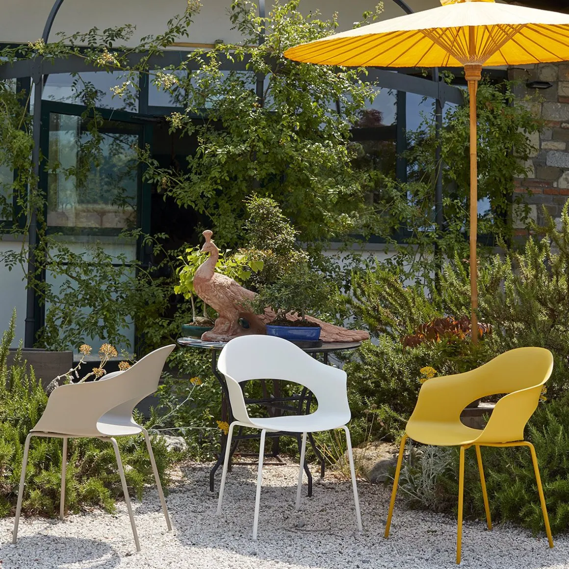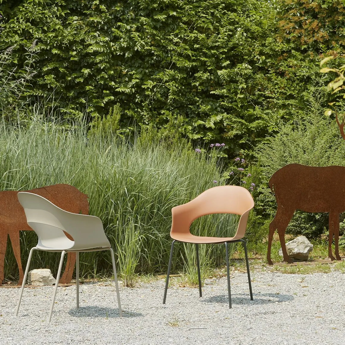Une palette chromatique multicolore et sept finitions, dont le précieux nickel noir et le laiton satiné, pour différents types de châssis, font de Lady B, avec sa coque en technopolymère ou rembourrée, une chaise parfaite pour les applications les plus variées.
