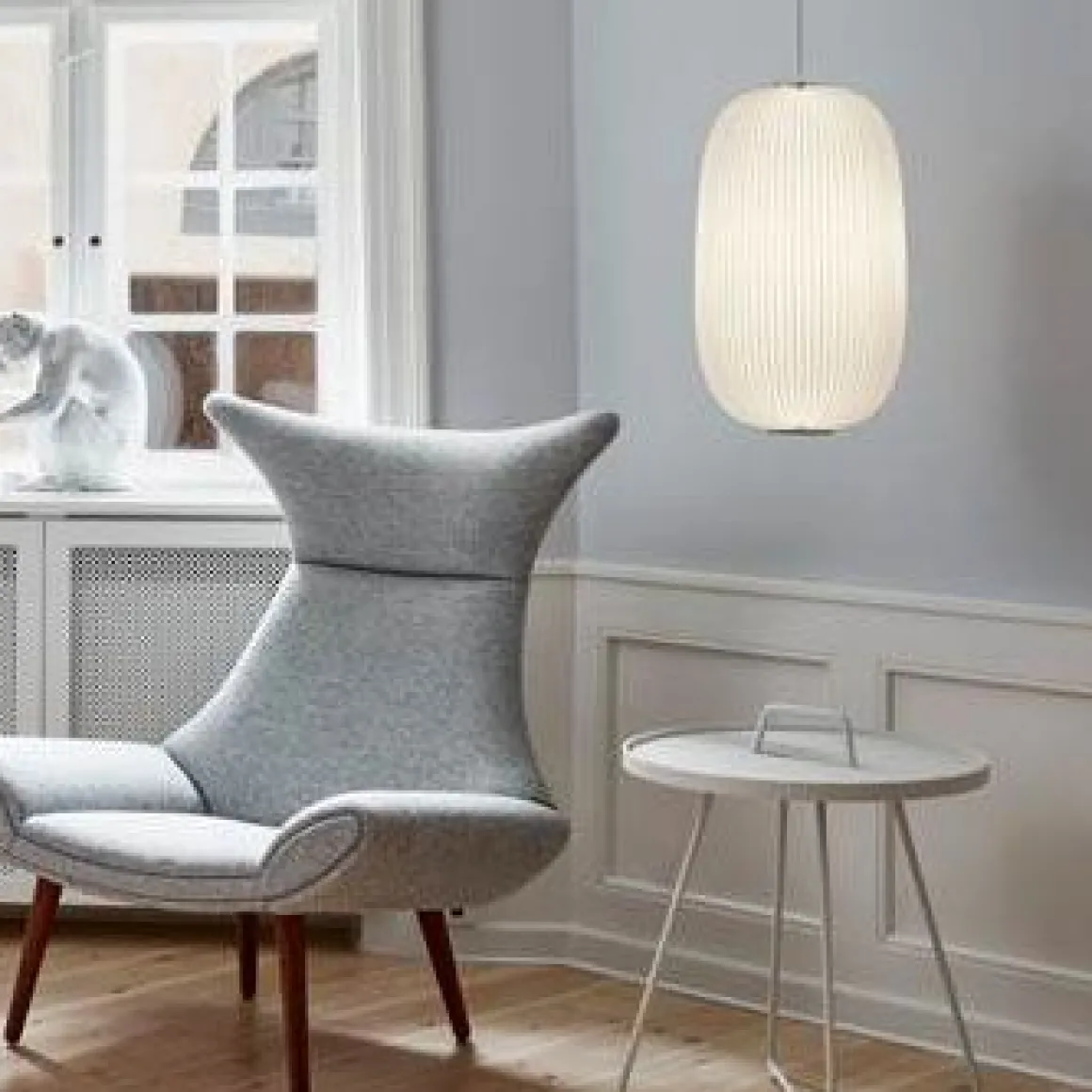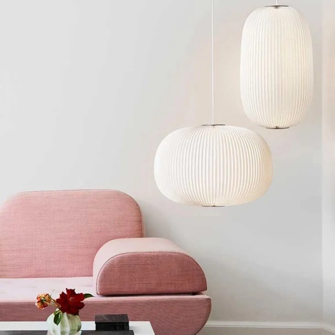 La série de lampes Lamella a été conçue par le duo Hallgeir Homstvedt et Jonah Takagi, sur la base de modèles antérieurs de Le Klint. La collection s’inspire des lignes courbes délicates qui se trouvent sur la face inférieure d’un chapeau de champignon, également appelé lamelles. La structure plissée, associée à une silhouette douce mais précise, est caractéristique du design de Lamella. La série Lamella est née de l’association du savoir-faire classique de Le Klint en matière de plissage et d’une ancienne technique brevetée de façonnage d’objets plats. C’est presque paradoxal, mais cette méthode de fabrication permet néanmoins de créer un design de lampe qui fait mouche, à la fois en phase avec la tendance actuelle des formes organiques d’inspiration rétro et avec les attentes du consommateur moderne en matière de design authentique avec une base historique solide.