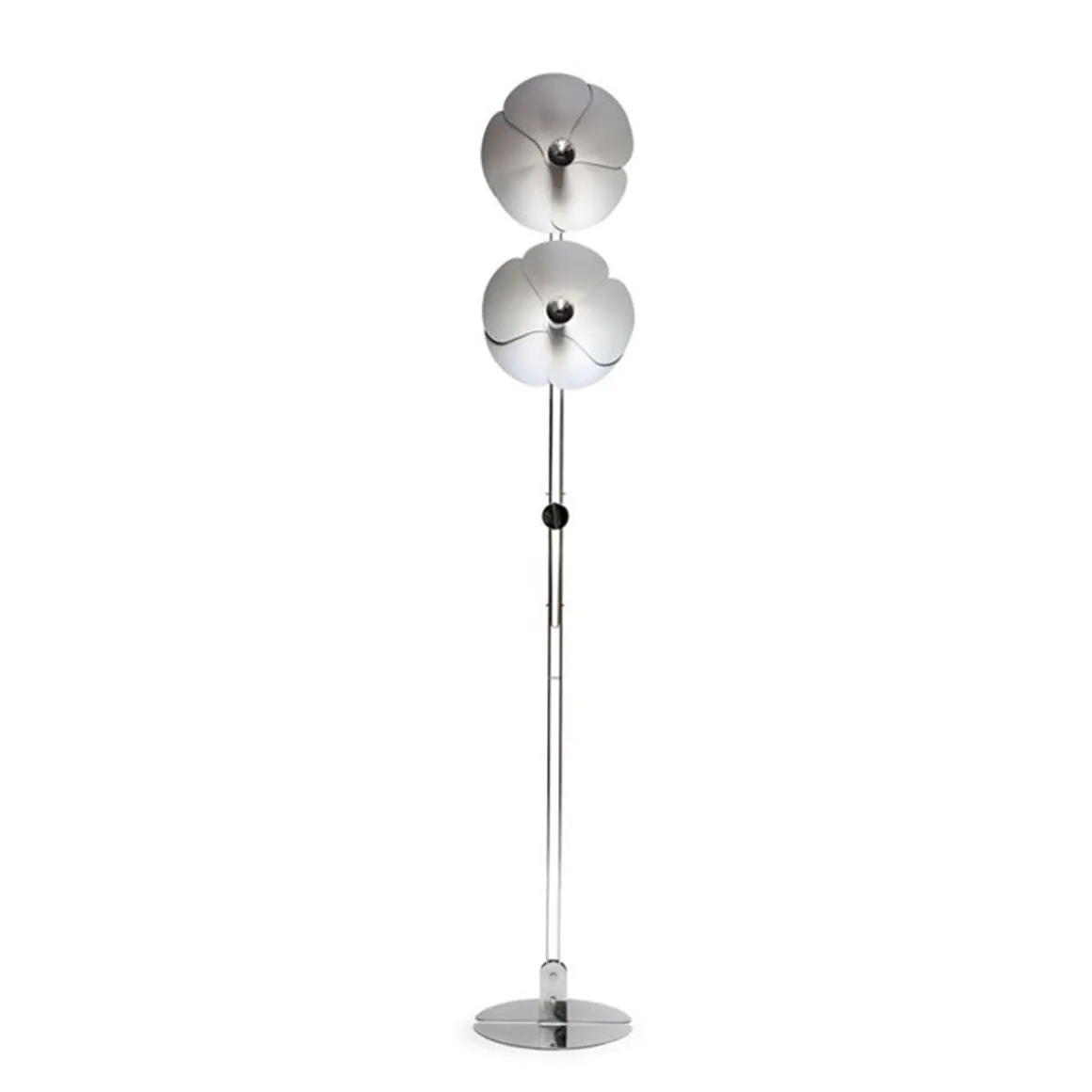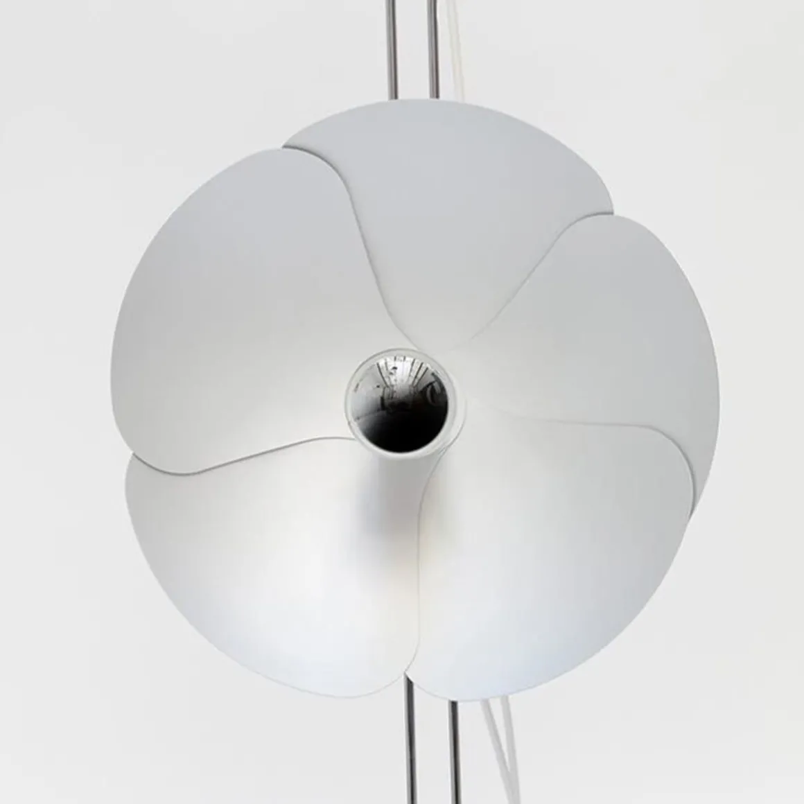 En 1967, Olivier Mourgue invente un appareil d’éclairage en forme de fleur en pétales d’aluminium fixé sur deux fils en métal chromé pour donner des appliques, des suspensions, des lampes ou des lampadaires. Il utilise cette nouvelle ampoule de l’époque dotée d’une calotte argentée qui permet de produire une lumière réfléchie et donc un éclairage de très belle qualité.