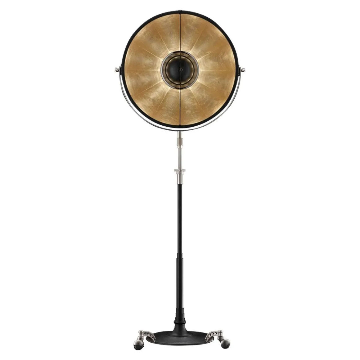 Le lampadaire Fortuny® Caster Base a une capacité de pivotement et d’inclinaison de 360 degrés. La lumière et indirecte et diffuse.