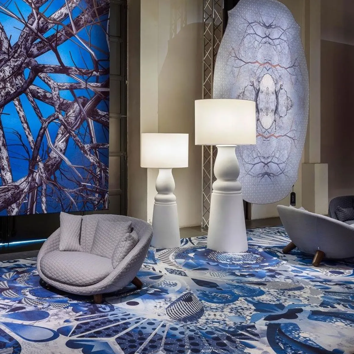 Le nom Farooo est inspiré du mot italien désignant un phare et son intense faisceau de lumière, qui sert de guide aux navires le long des côtes dangereuses. Caractérisée par un corps sinueux et ornemental et un abat-jour contemporain, cette lampe se décline en trois dimensions imposantes. Laissez-vous conduire à la sécurité avec le faisceau lumineux de Farooo et flottez joyeusement vers sa douce lueur placide.