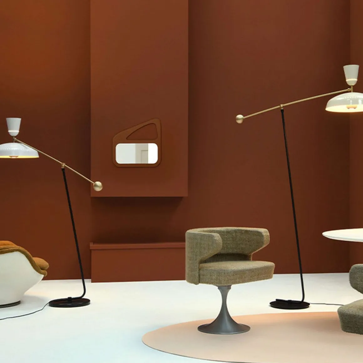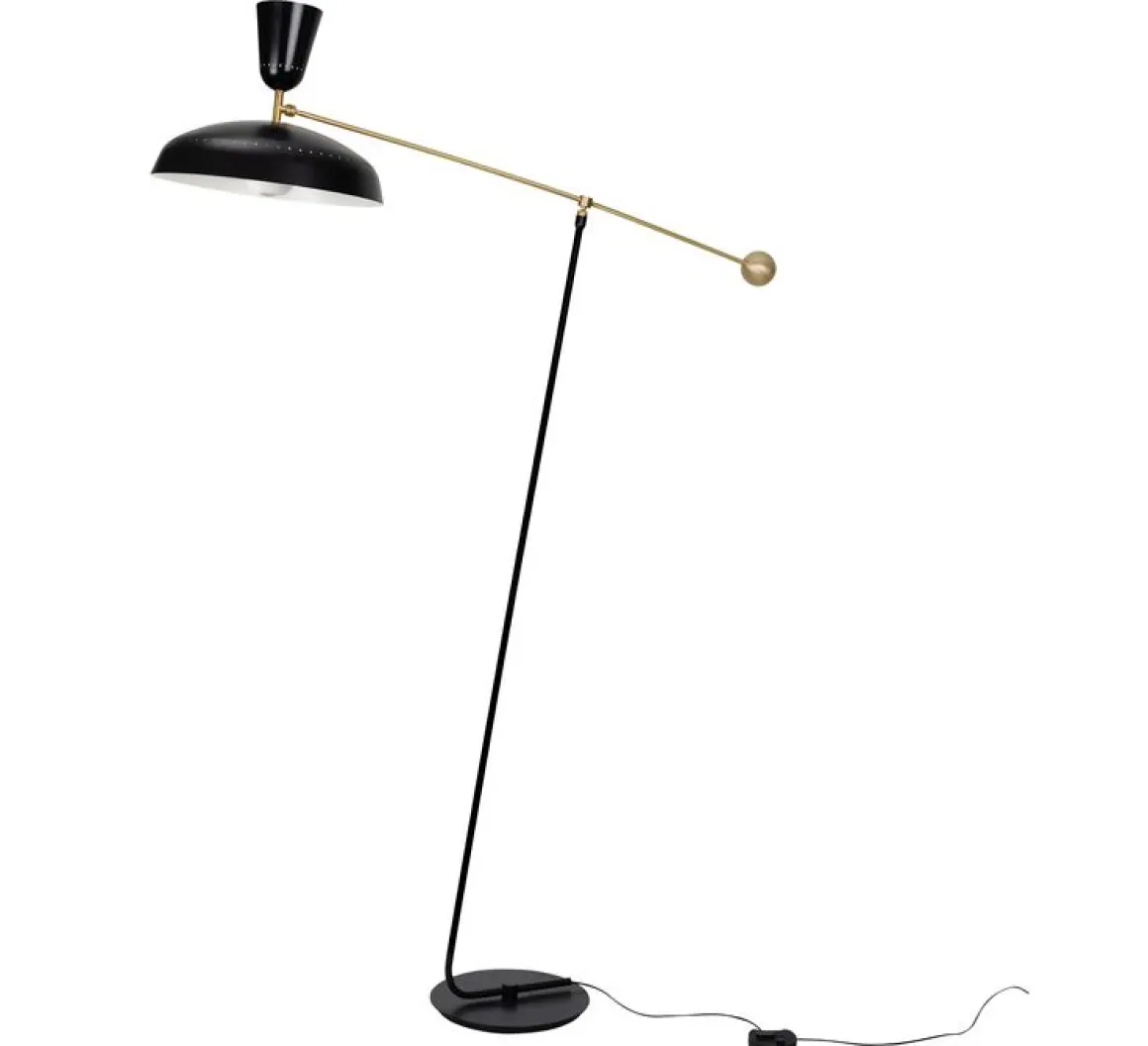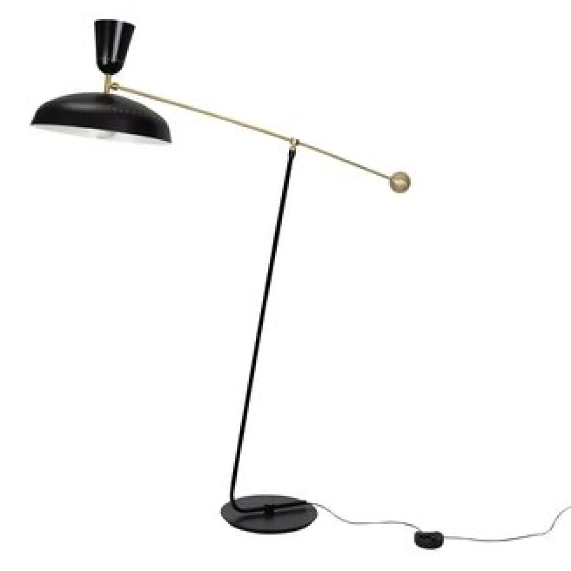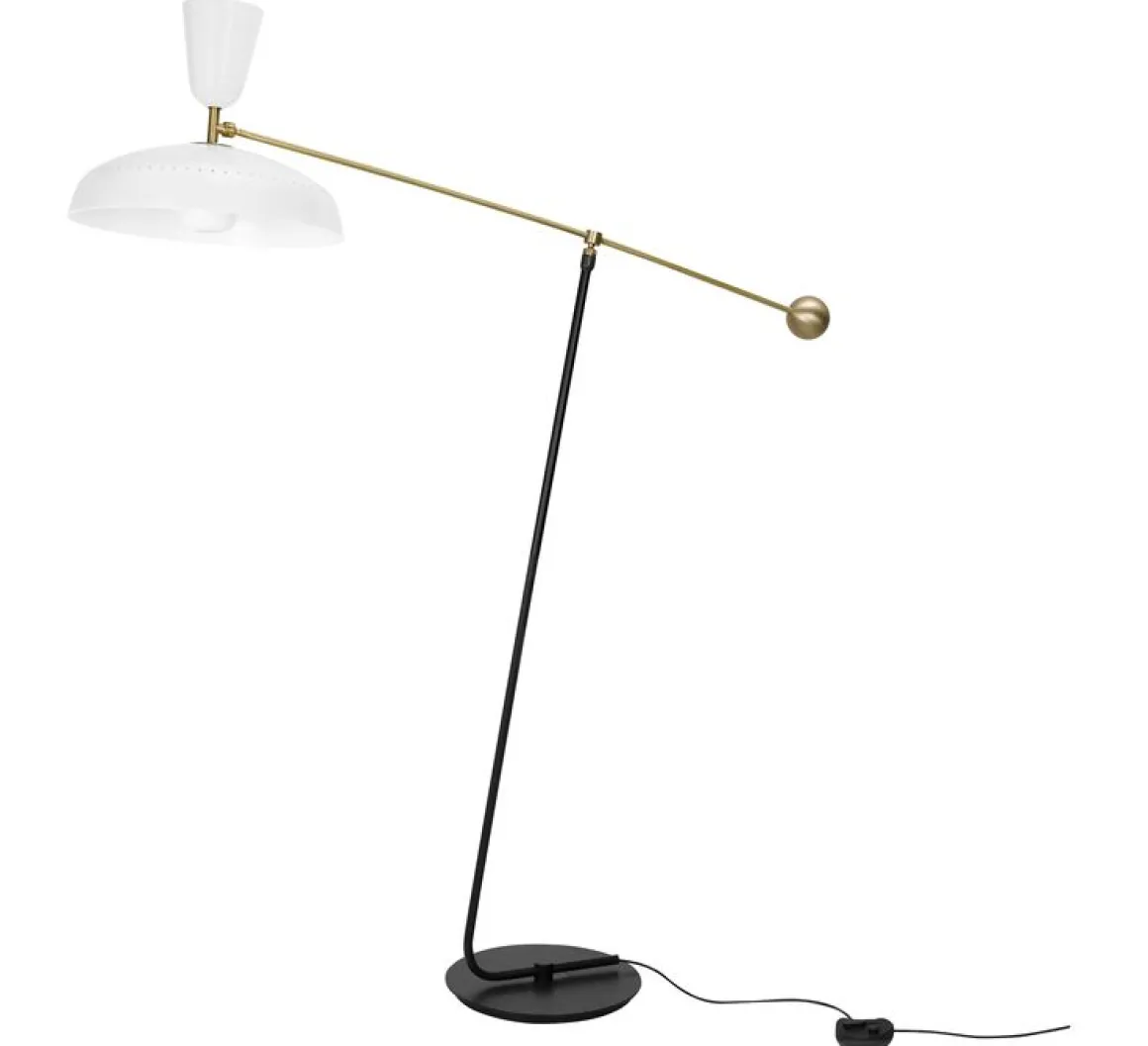 Disponible en deux tailles, ce lampadaire majestueux et intemporel fut dessiné par Pierre Guariche en 1951. Modèle emblématique des luminaires créés par le designer, il se distingue par un abat-jour en métal repoussé et deux sources lumineuses apportant un éclairage direct et indirect. Orné d’une boule de laiton massif pour contre-poids, son bras également en laiton repousse les limites de la gravité. C’est tout en légèreté que vous pourrez orienter la lumière au fil de votre journée. Sa version grande dite « Large » – hauteur 1m75 – est idéale pour éclairer la surface d’une table. En petite version – 1m20 –, il sera parfait pour un coin lecture ou un espace de détente. Son abat-jour spectaculaire est mis en lumière par deux ampoules pour un éclairage homogène et confortable. Quatre finitions s’offrent à vous : rouge vermillon, noir, blanc et craie, à vous de choisir celle qui viendra sublimer votre intérieur ! Existe aussi en versions applique et suspension. Tous nos luminaires sont fabriqués, assemblés et emballés dans notre usine à Châtillon-sur-Saône dans les Vosges.