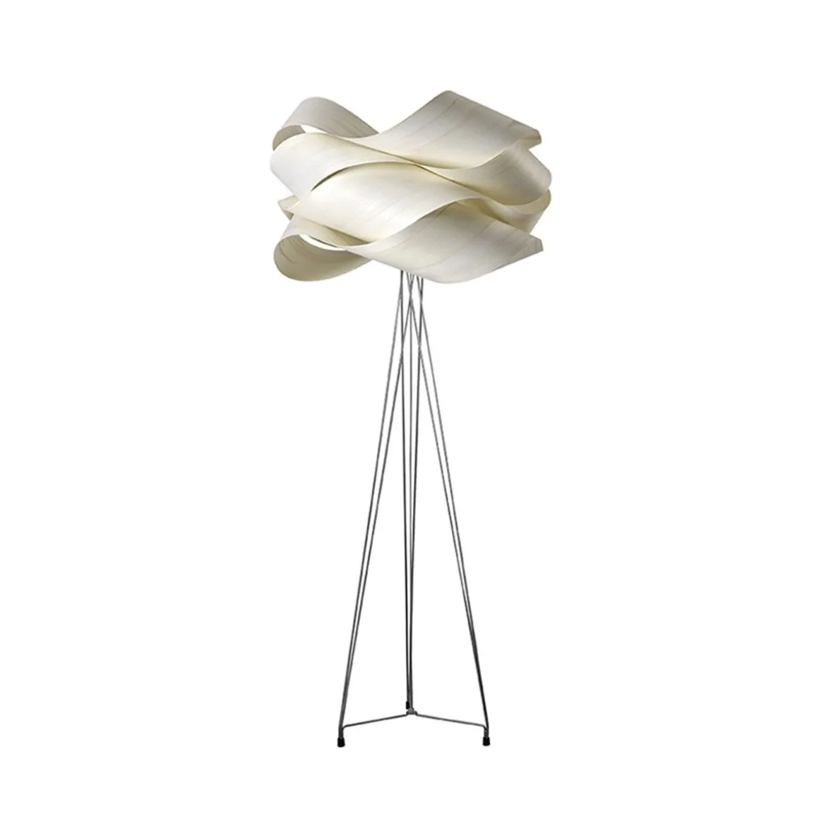 Conçu par Ray Power, Link apparait avec une fringale exceptionnelle dans ses bandes de placage de bois empilées Möbius. En mathématiques, la bande de Möbius est une surface avec un côté continu, ce qui signifie que la lumière de Link est non seulement belle, mais qu’elle est aussi intelligente. Grâce à sa structure volumineuse, semblable à un nuage, Link est résolument facile à regarder. De former ponctuelle, la forme flottante de la lampe illustre de manière intelligente le potentiel important du bois dans la conception des éclairages. Link est une lampe de sol attrayante dont la masse volumineuse repose au sommet d’une base chromée.