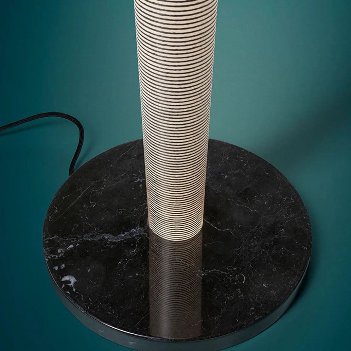 Le volume de la lampe est identique à l’original, mais le fil de carbone est beaucoup plus fin, monté sur une spirale plus large qui se densifie en convergeant vers la base; ce dernier est en marbre noir raffiné, tacheté de veines blanches et gris pâle. La finition du corps de la lampe est mate plutôt que brillante, un choix qui souligne plus précisément l’élégance de l’effet décoratif. Les nouveautés de Mite Anniversario ne sont pas seulement de nature esthétique, mais surtout technologiques et pertinentes pour la lumière produite par la lampe. Avec Mite Anniversario, la partie éclairage a été améliorée en appliquant les dernières innovations en matière de LED sector. Un nouveau système de panneaux LED offre une distribution lumineuse plus large dans l’environnement et un éclairage complet du diffuseur, augmentant l’efficacité et diminuant la consommation en même temps.