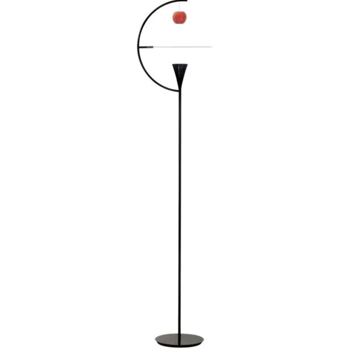 Lampadaire LED avec structure en métal chromé ou diffuseur en aluminium laqué noir brillant et blanc. Le diffuseur tourne et illumine l’élément naturel, dans un mélange de lumière directe et diffuse. Une source LED haute performance a été fournie pour reproduire le plus fidèlement possible les couleurs et les nuances de la pomme. Caractérisé par une référence ludique à l’anecdote de la pomme tombée sur la tête de Newton lui faisant deviner l’existence de la force de gravité. Gradation de l’interrupteur à pédale. Lumière indirecte et diffuse, une tige en métal est fixée au dessus du disque-réflecteur pour suspendre une pomme (non fournie).
