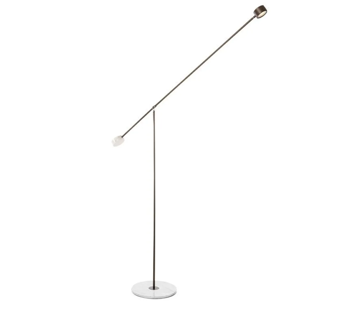 Le luminaire T-Lamp est composé d’une base circulaire en marbre, d’un long corps tubulaire en métal et d’un bras tubulaire pivotant avec d’un côté un poids en marbre circulaire et de l’autre une tête métallique circulaire intégrant la source lumineuse. S’inspirant de l’univers d’Alexander Calder, T-Lamp est gracieux et mouvementé. Le lampadaire T-Lamp se pose aisément dans une pièce de vie, un bureau ou un coin lecture.