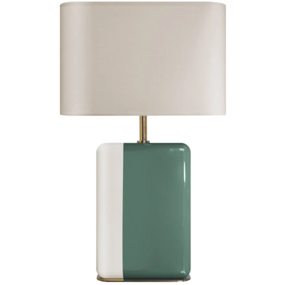 Matériaux : abat-jour en tissu lin et socle en bois laqué et laiton