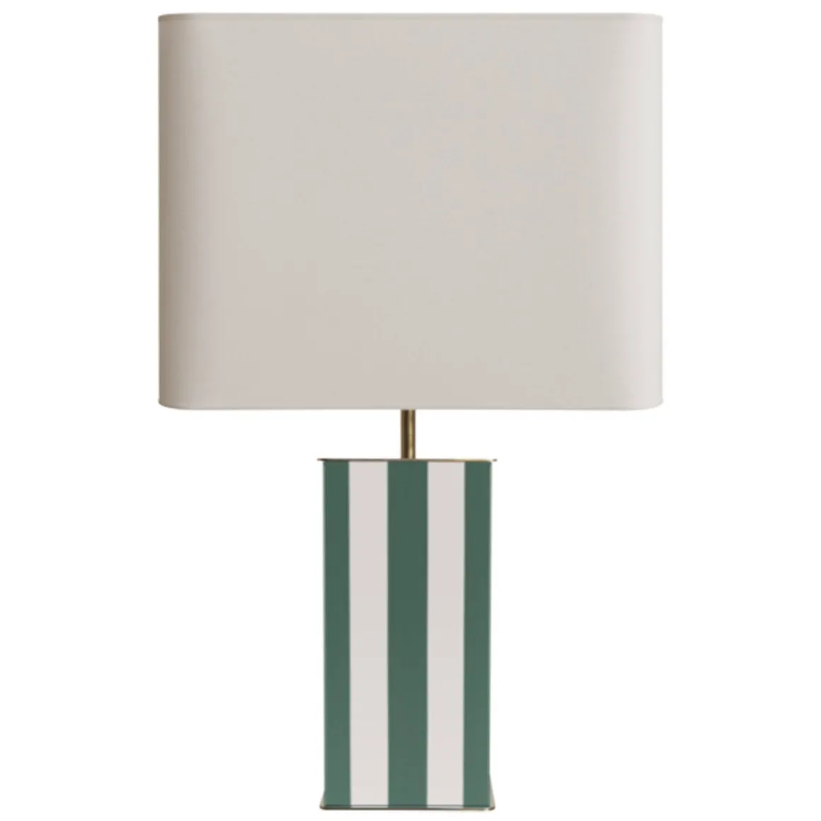 Laiton et laque bicolore noir et moutarde se marient à merveille dans cette lampe à poser, majestueuse et raffinée. Les rayures du pied sont rappelées sur l’abat-jour bordé de nois : l’effet d’optique est parfait et c’est là que l’esprit dandy entre à l’Élysée.