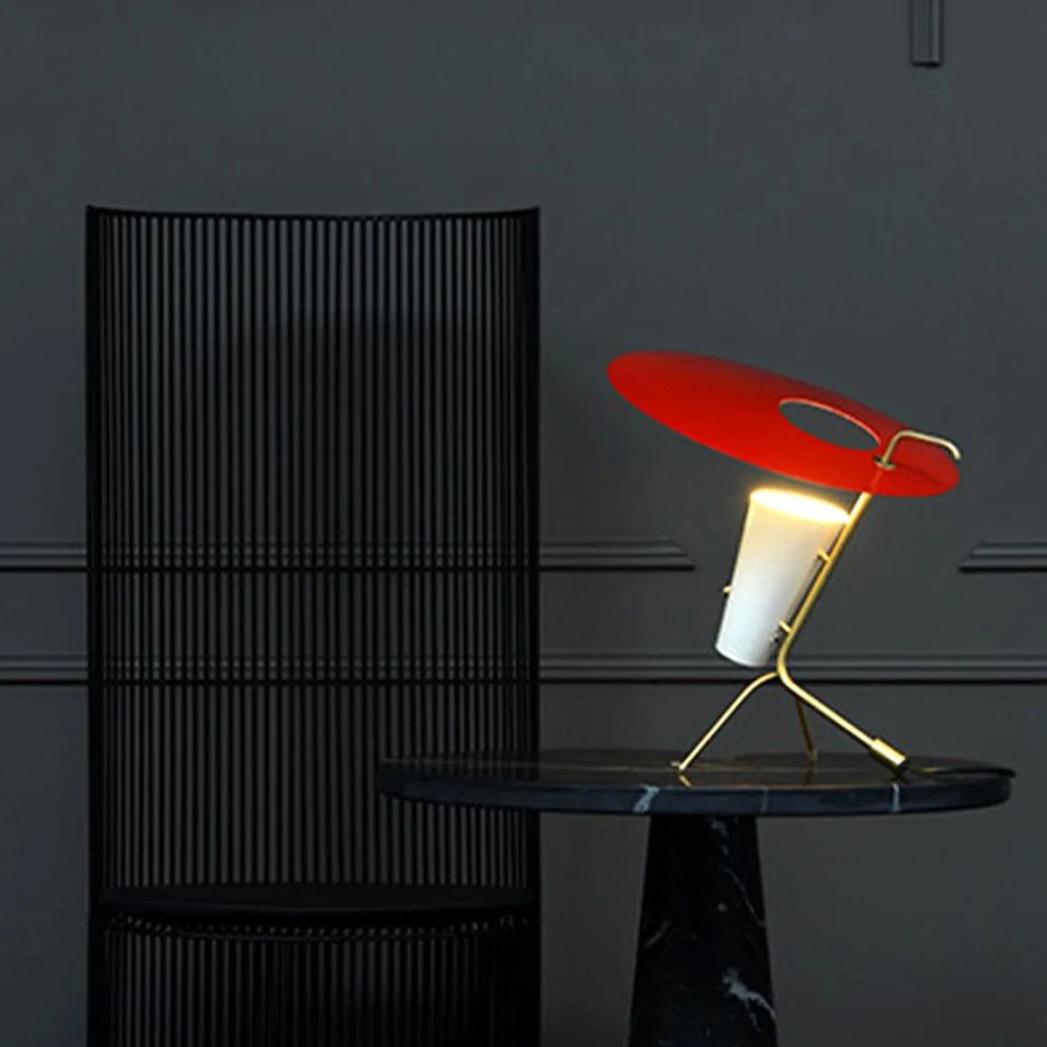 Dessinée par Pierre Guariche en 1953, cette lampe à poser aux lignes intrigantes se décline en quatre finitions : vert anglais, rouge vermillon, noir et sable. À chaque saison sa couleur ! Élégante, délicate et sculpturale, elle éclaire à merveille un bureau, une console ou une table de chevet. Tous nos luminaires sont fabriqués, assemblés et emballés dans notre usine à Châtillon-sur-Saône dans les Vosges.