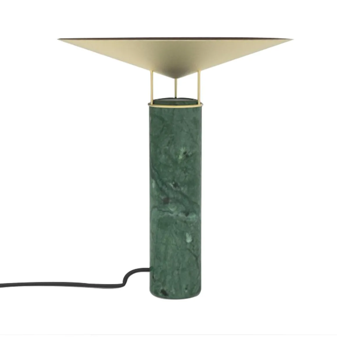 Rebound est une lampe à poser par Carpyen. Elle est composée d’un pied cylindrique en marbre qui supporte un abat-jour de forme conique en laiton doré et cuir. Rebound est équipée d’un câble d’alimentation et d’un interrupteur-dimmer qui vous permet de moduler l’intensité de la lumière de votre lampe à poser Rebound.