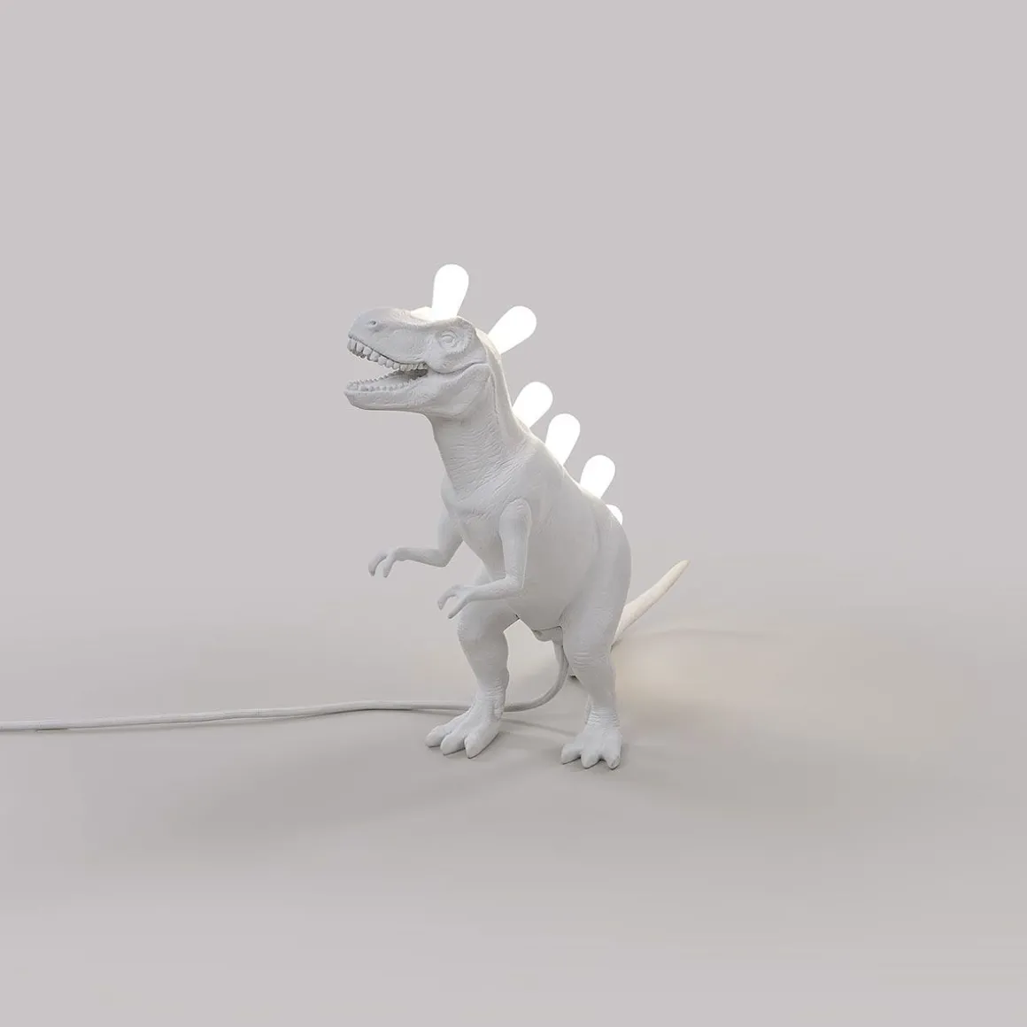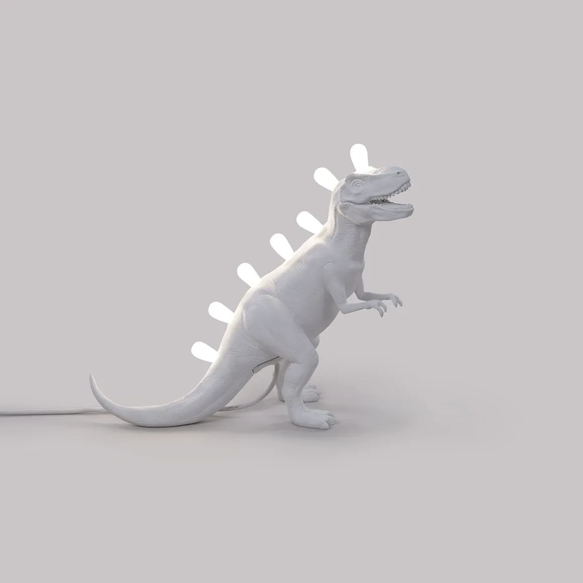 Un morceau de l’ère mésozoïque dans votre maison. Les lampes Jurassic sont fabriquées à partir de résiné blanche et se déclinent en deux option différentes, Brontosaure et Tyrannousaurus. Ils montent respectivement 8 et 7 ampoule LED chaudes.