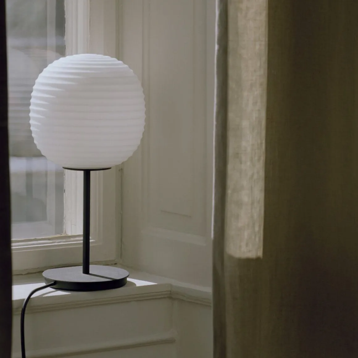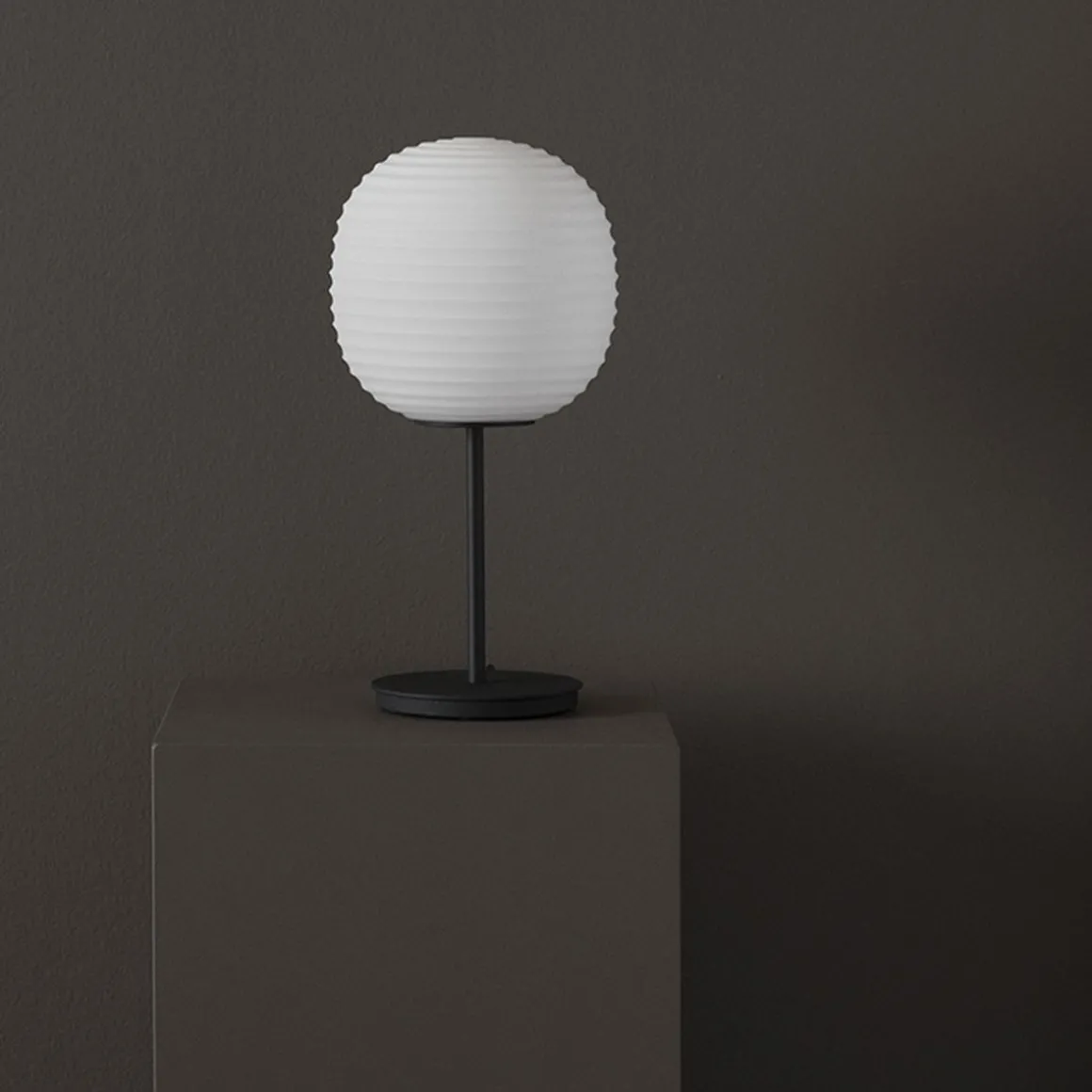 Apportant l’éclairage doux de son prédécesseur suspendu, le lampadaire Lantern et la lampe de table Lantern complètent cette famille emblématique. Inspirées des lanternes chinoises traditionnelles en papier de riz, leurs formes en verre dépoli reproduisent cette lueur en apesanteur. Gardant fermement cette forme sculpturale au centre de la scène, une simple base en acier noir rehausse sa lueur chaleureuse.