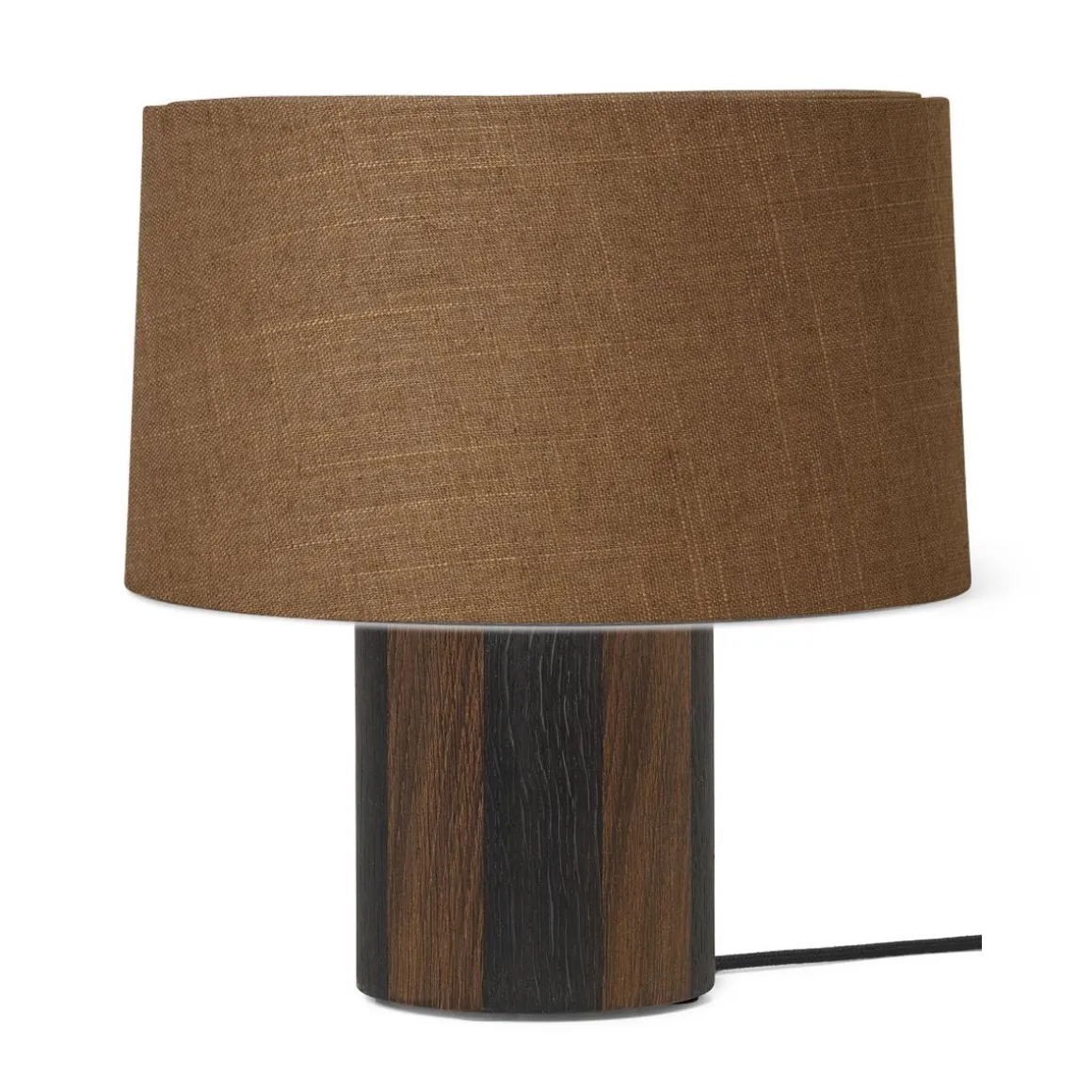 Matériaux : placage de chêne fumé certifié FSC™ avec âme en MDF, abat-jour recouvert d’un tissu composé à 90 % de lin et 10 % de polyester