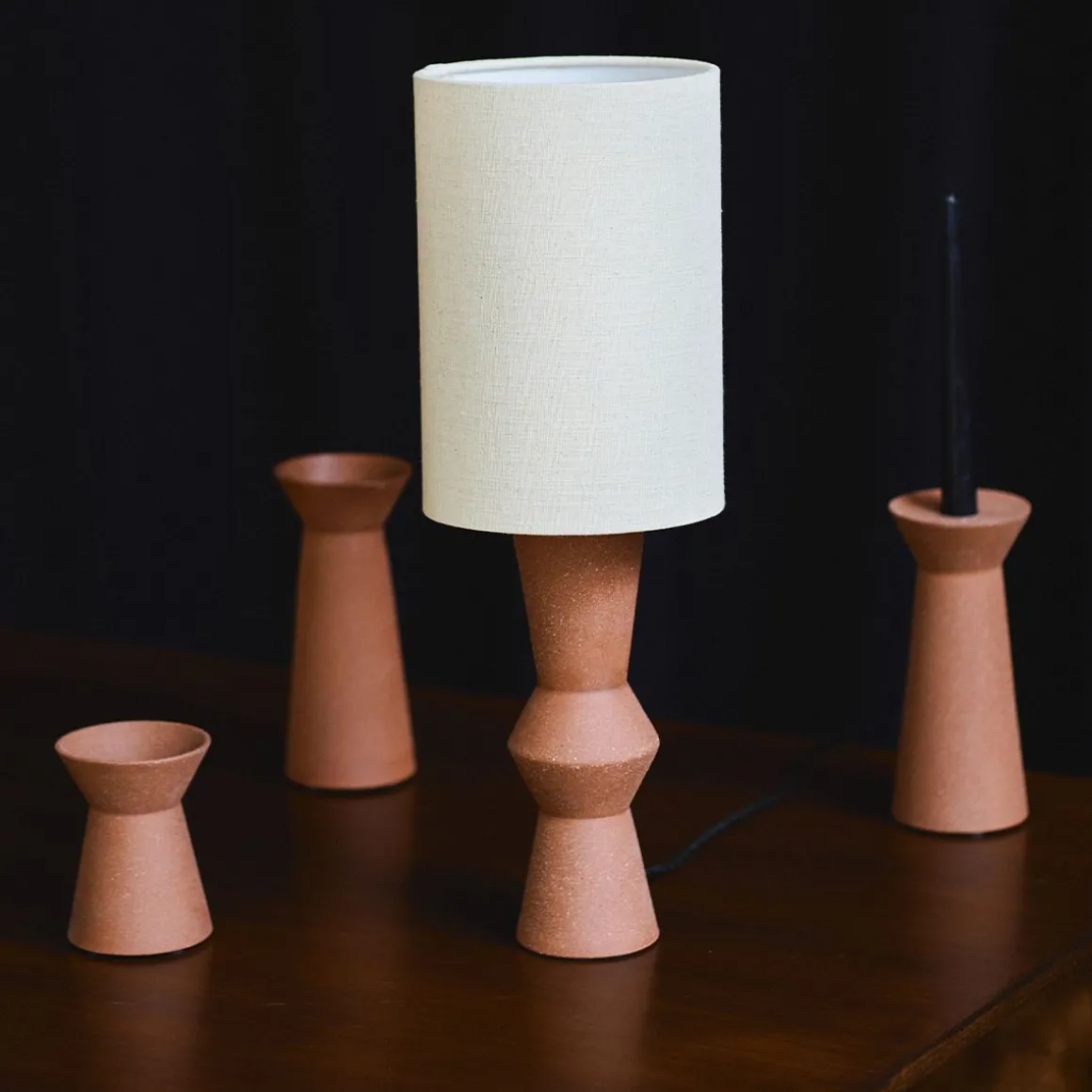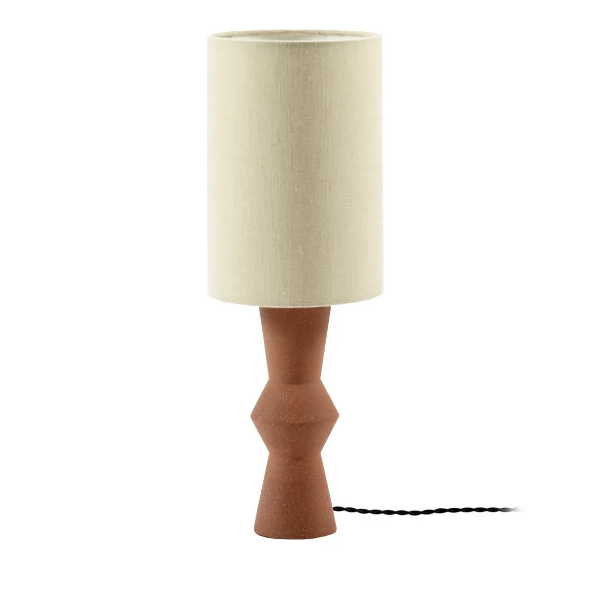 La lampe de table Marie-Ann de Marie Michielssen présente une base élancée en terre cuite rouge-brun, associée à un abat-jour haut et étroit en lin. Le subtil cordon de fer gainé de tissu apporte une touche nostalgique et raffinée à ce luminaire. Ce mélange de matériaux chaleureux et de formes élégantes confère à ces lampes de table un charme sobre, chic et intemporel.
