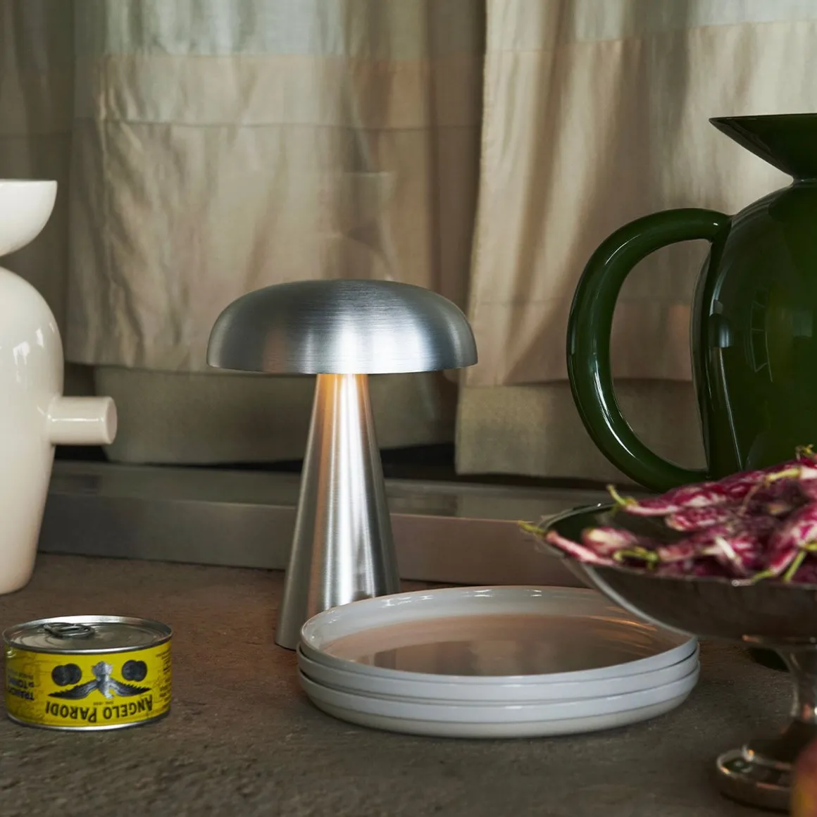 Associez l’éclairage à l’ambiance avec Como SC53, une lampe de table portable de Space Copenhagen. Fabriquée à partir d’aluminium anodisé, la base robuste de Como se rétrécit vers un abat-jour légèrement incurvé en forme de champignon. Cette lampe alimentée par batterie peut fonctionner pendant onze heures au réglage le plus élevé, avec une option de batterie supplémentaire qui permet un fonctionnement supplémentaire. Il se recharge facilement avec un câble USB magnétique ou un plateau de chargement.