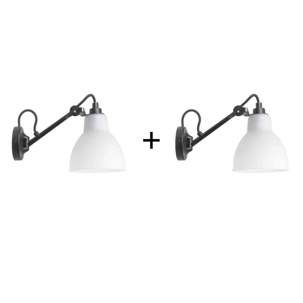 Lampe Gras N°104 de DCW éditions par Bernard-Albin Gras. La Lampe Gras N°104 (cousine de la N°204) est une applique de tête-de-lit dont le bras est légèrement incliné (54°) et pivotant pour une meilleure adaptation à son utilisation en tête-de-lit. Sobre, efficace et élégante.