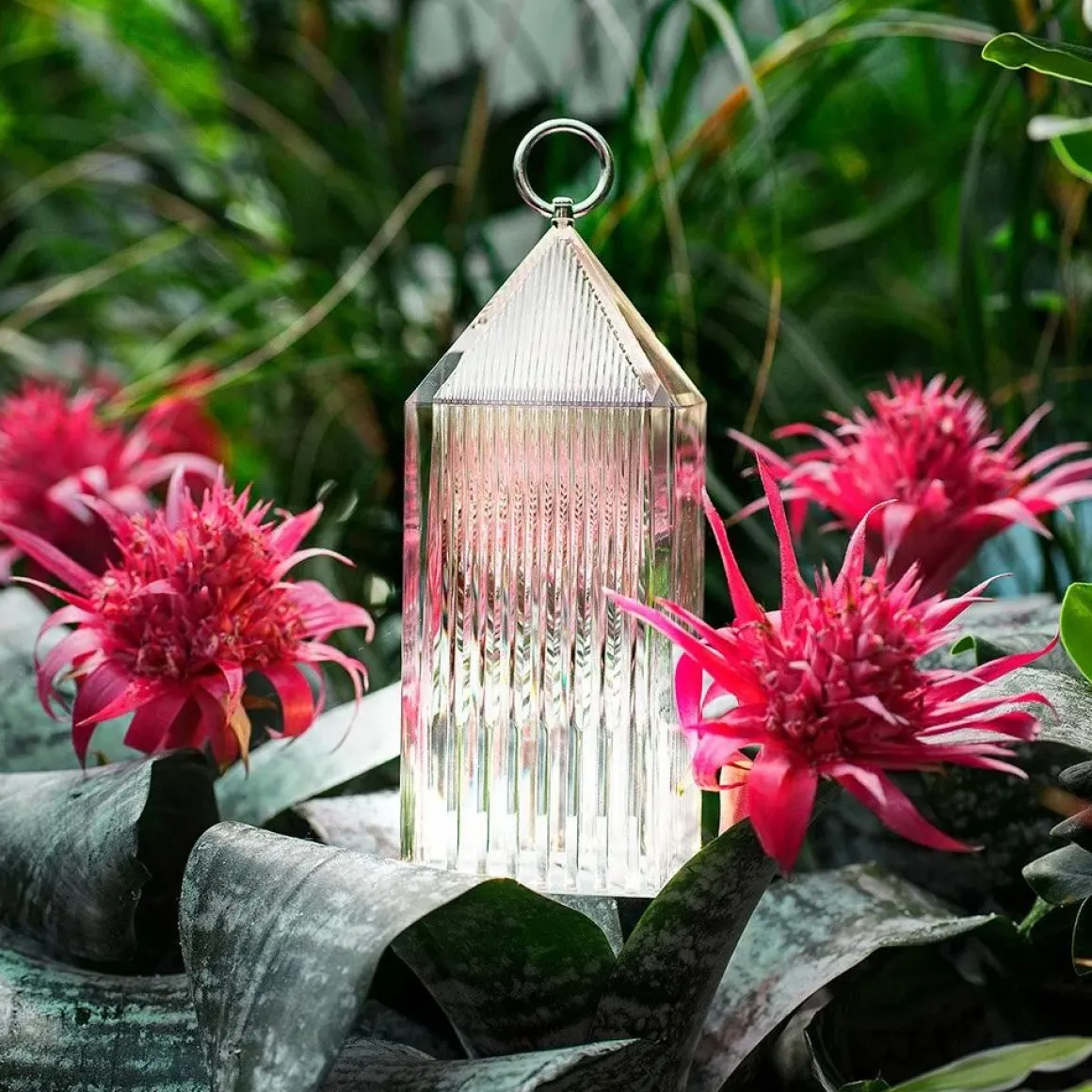 LANTERN de Fabio Novembre évolue dans cette nouvelle version en PMMA recyclé. Le socle rechargeable est désormais intégré au corps de la lampe, offrant une autonomie étendue jusqu’à 10 heures même à puissance maximale ainsi qu’une fonction variateur. Conformément à l’engagement de Kartell en faveur du développement durable, cette nouvelle lampe high-tech est désormais fabriquée à partir de PMMA recyclé. Il se décline dans les couleurs Cristal, Ambre, Glycine, Fumé et Rouge.