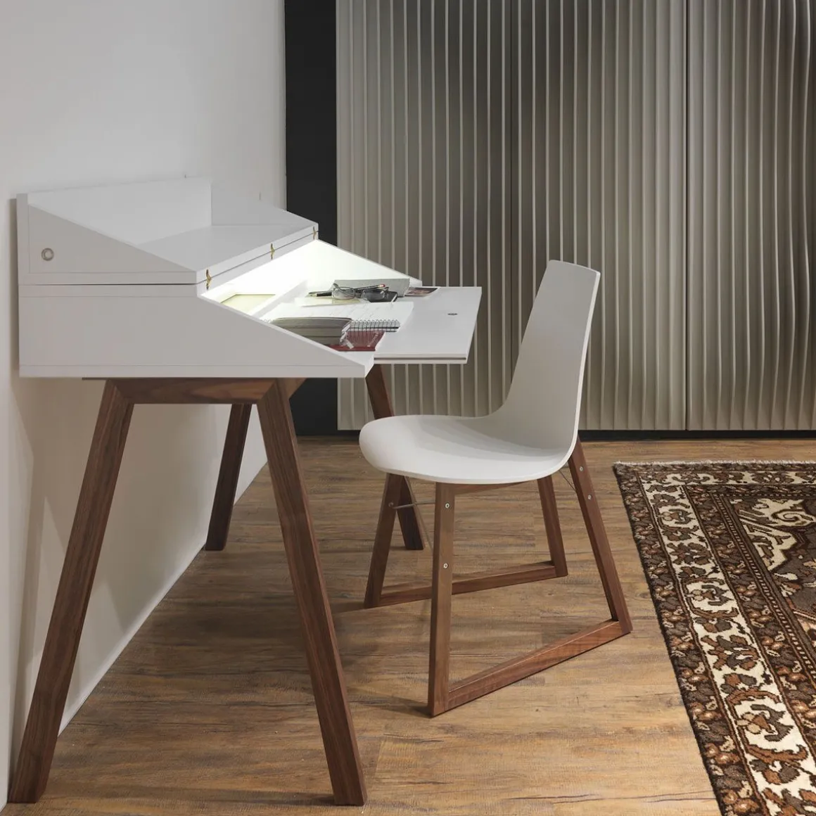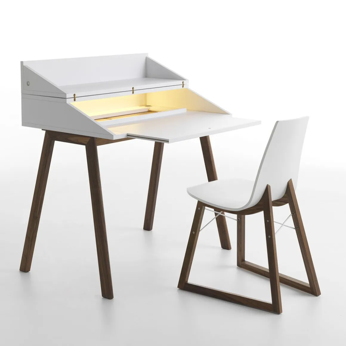 Bureau est un meuble bureau moderne, pour écrire, “naviguer” ou rêver. Il est parfait pour les petites habitations où les espaces deviennent polyfonctionnels. Grâce à sa capacité à se refermer sur lui-même, Bureau se distingue, en effet, par sa discrétion, dissimulant à l’intérieur la vie privée de son utilisateur.