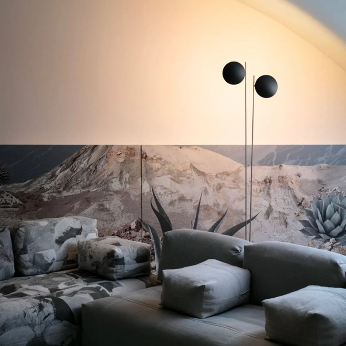 Orientation de la lumière vers le mur, type d’éclairage lampadaire.