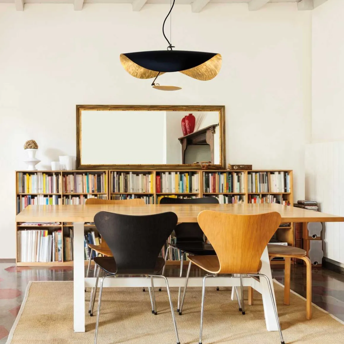 La suspension S1 est une création chic et tendance. Son esthétique particulière nait de la rencontre entre deux éléments contrastés : un grand abat-jour, simple et épuré, renfermant une construction sophistiquée. La forme fluide et dynamique du grand abat-jour en fibre de verre évoque un tissu qui flotterait au gré du vent. Il recouvre une construction géométrique aux accents art déco. Cette structure architecturale, fine et élégante, se compose d’une coupole qui joue les équilibristes sur une tige obliques en métal. La coupoles est rotative (360°) afin d’orienter la lumière selon vos besoins. Les lampes Catellani & Smith sont fabriquées à la main par différents artisans. La suspension Lederam Manta S1 est écologique, grâce à son système d’éclairage basse consommation LED. Elle vous fait profiter d’une classe énergie type A+++ pour éclairer en douceur sans culpabiliser ! La lampe est issue de la gamme eco-logic light, qui propose des luminaires en énergie LED, qui consomme environ 5 fois moins qu’une ampoule normale, qui vous fera faire des économies et en plus, vous pourrez faire un geste pour notre précieuse planète.