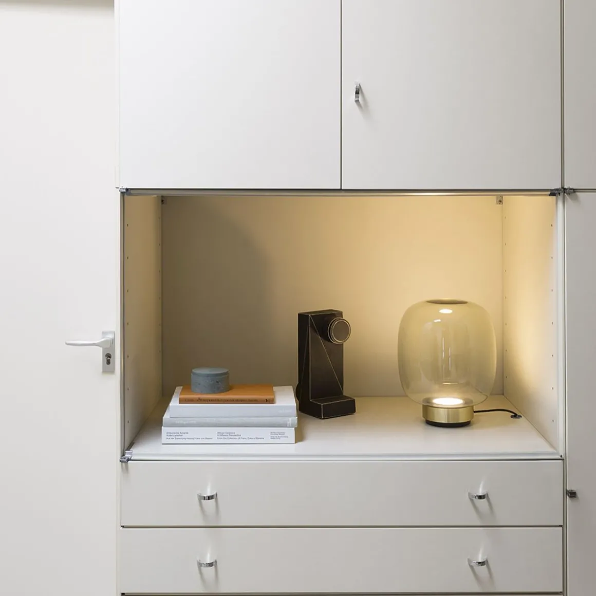 Collection de lampes inspirées des formes classiques du diffuseur de Murano habituellement utilisées comme décoration n’importe où dans une maison ; élégante burette sphérique apparemment fragile mais très robuste et fonctionnelle. Ces lampes peuvent avoir la connexion en cuivre, laiton brossé ou peint, tandis que le diffuseur est réalisé en verre soufflé blanc opale ou fumé aux formes harmonieuses et décoratives. Polyvalentes, élégantes et robustes, ces lampes peuvent être positionnées au sol, sur la table, au plafond, au mur et suspendues, aussi bien en version monobloc qu’en version lustre à quatre ou six éléments. Ces lampes donnent classe et sophistication à n’importe quel endroit, qu’il soit sobre ou somptueux.