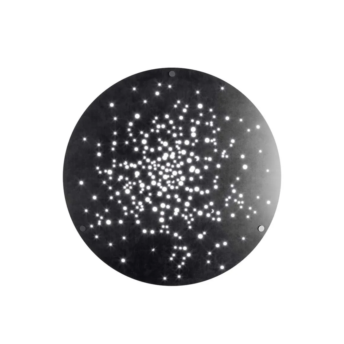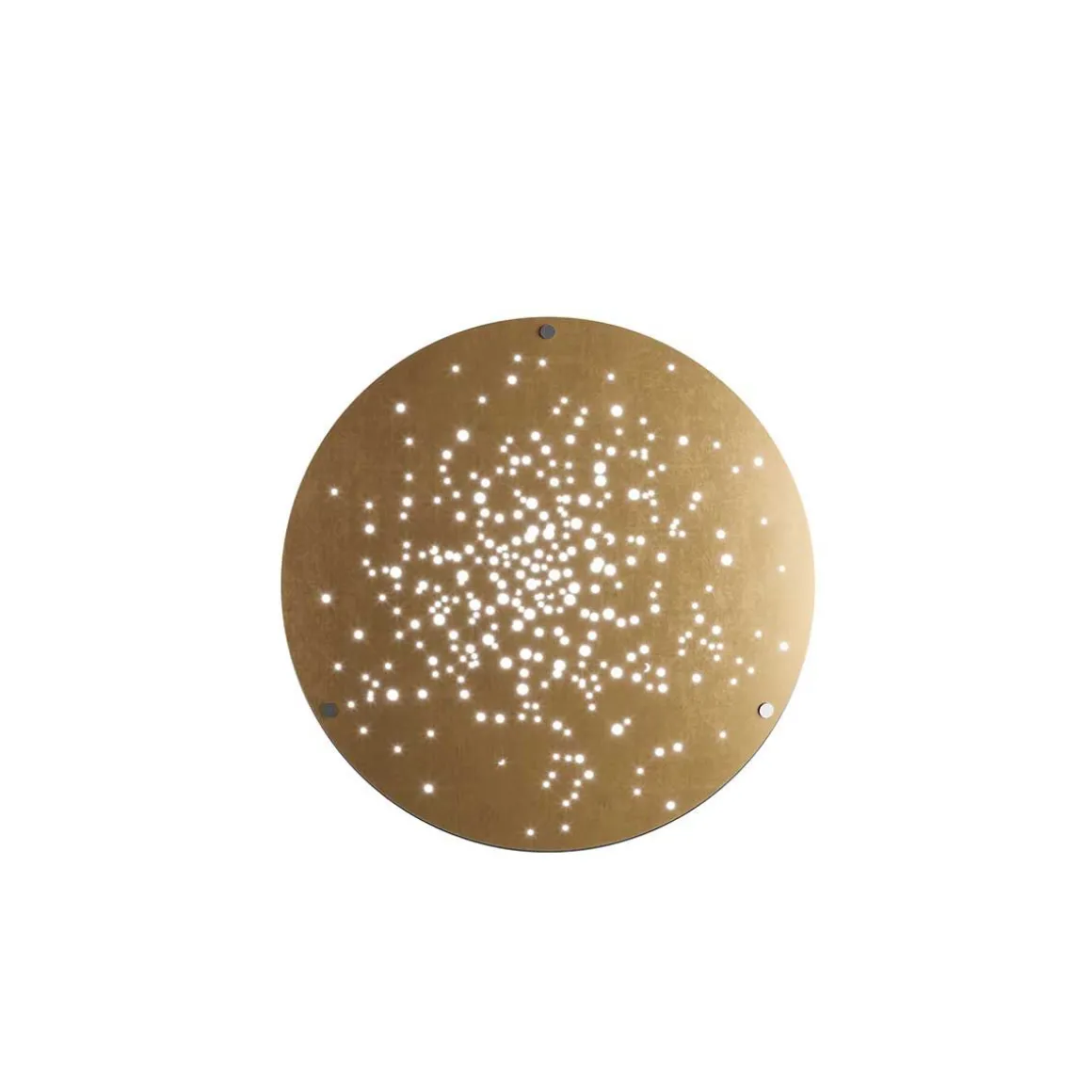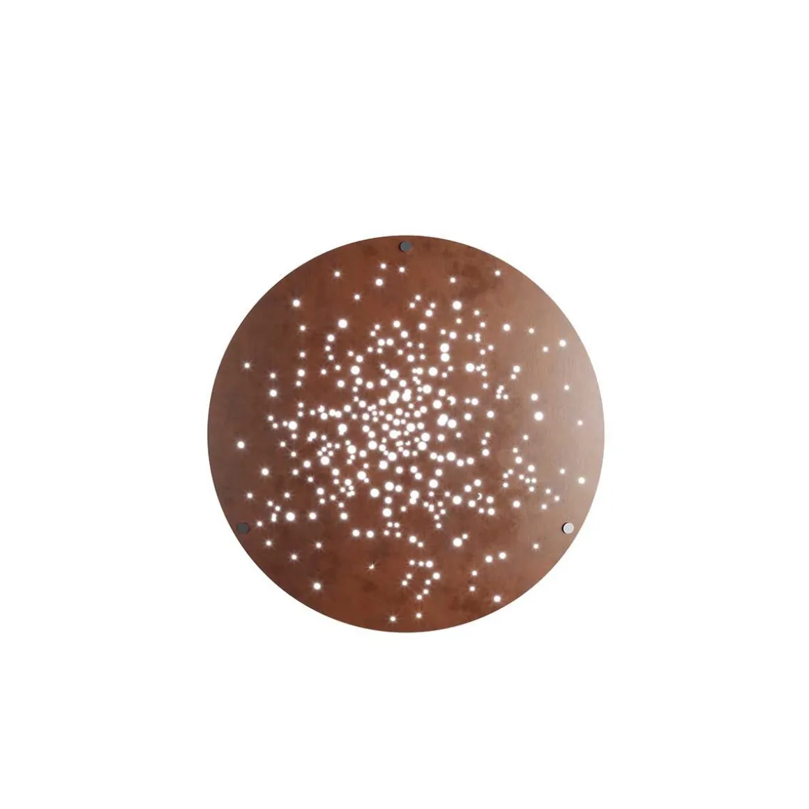 L’applique/plafonnier présente des strips à LED qui éclairent la partie frontale et latérale du disque en créant ainsi d’agréables effets de lumière. Les disques métalliques arborent les teintes brunes du laiton, du cuivre et du fer noir, au moyen d’un procédé artisanal rendant unique en son genre la finition de chaque loupe.