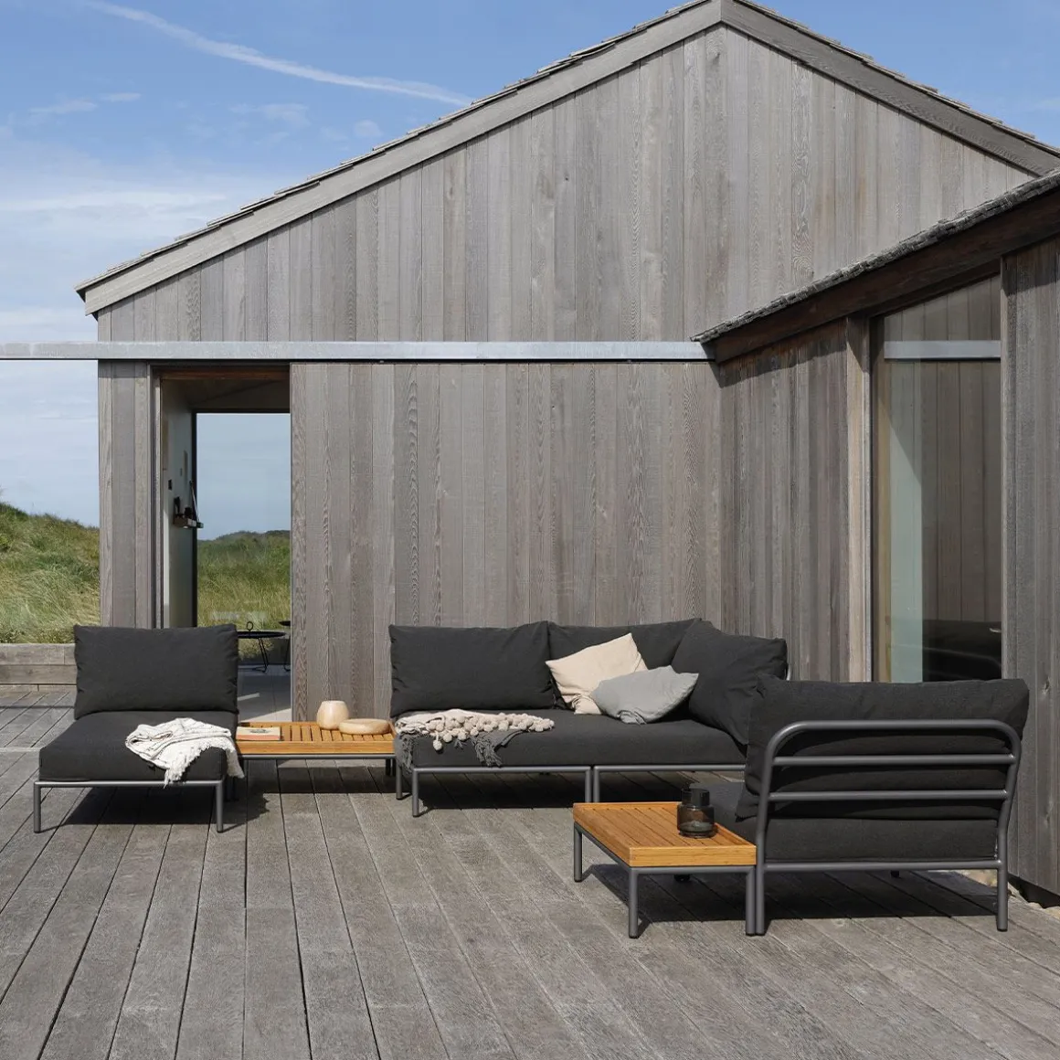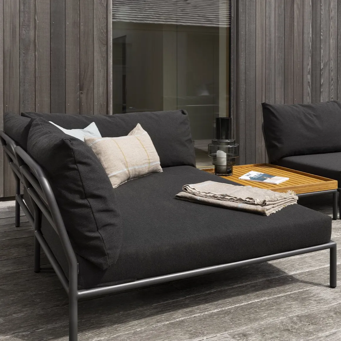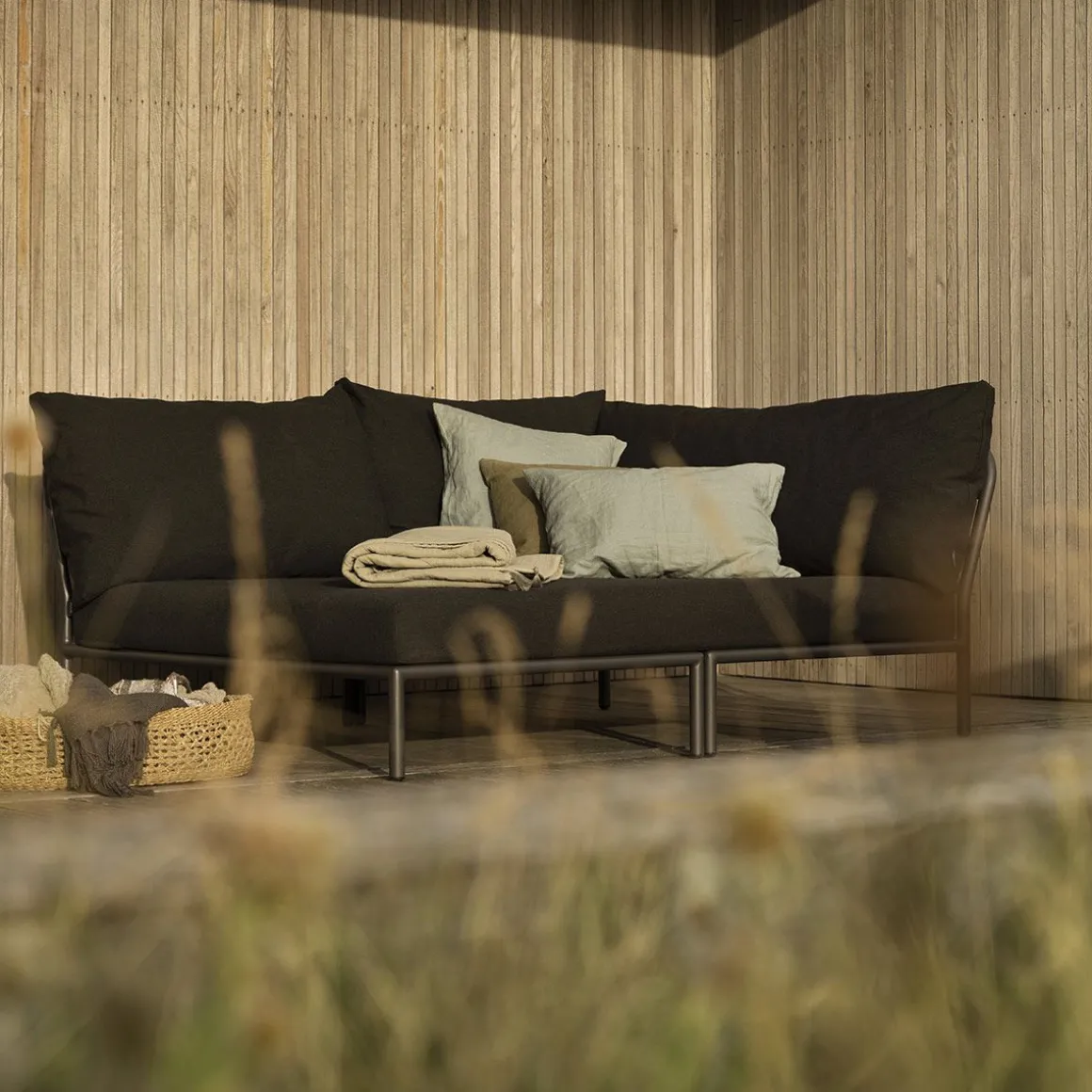 Il s’agit de se mettre à niveau, d’être face à face avec la nature, de se relier à l’horizon et de faire monter les lignes et les formes à un niveau supérieur ! Le cadeau léger et les coussins moelleux créent à la fois contraste et confort – et attirent une atmosphère de salon décontractée. LEVEL est une collection de salons modulable de différentes manières. Les coussins sont fabriqués avec du tissu Sunbrella Heritage qui contient 50% d’acrylique recyclé. Des extrémités de fibres colorés issues de processus de réutilisation de la matière première peuvent apparaître dans le tissage et faire varier la couleur du tissu d’un lot à l’autre. Cela crée un tissu unique avec un aspect naturel et un charme vintage.