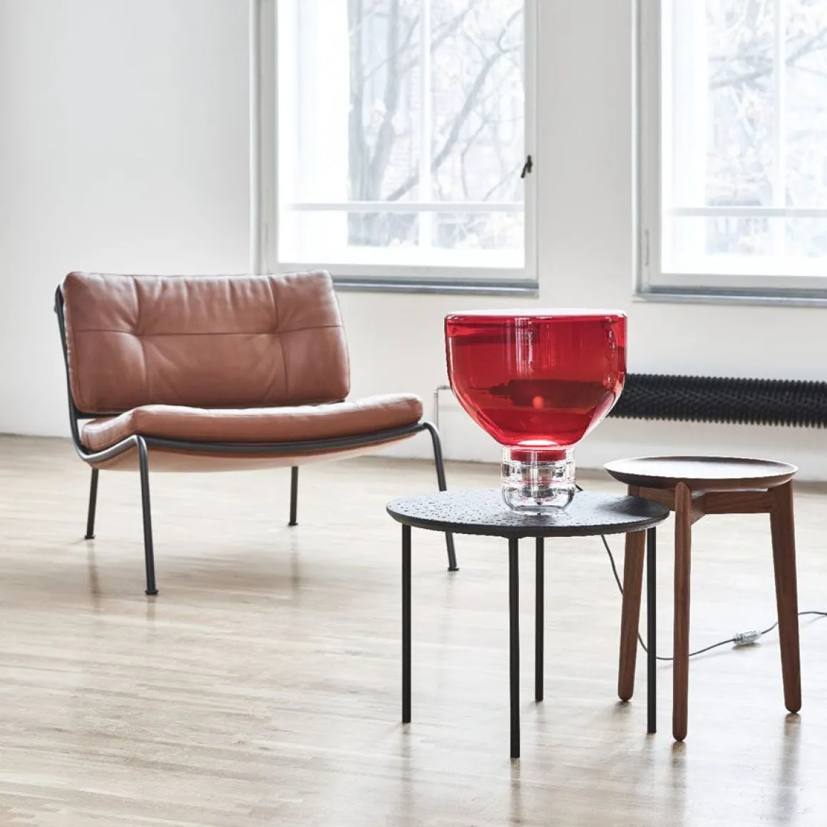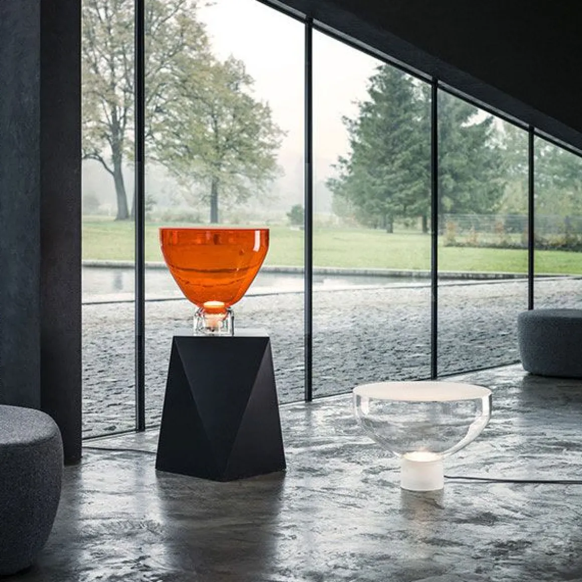 Par chacune de ses composantes, la série de luminaires en verre portant le nom de Lightline célèbre le verre en tant que matière. Le concept Lightline, soit un design de lignes lumineuses, découle des différentes propriétés du verre et de ses diverses apparences. Le projet se base sur l’effet d’une lumière diffusée de manière uniforme sur une surface sablée ce qui, vu de profil, peut être interprété comme formant une ligne de lumière. De manière fondamentale, cette lampe se compose de deux pièces en verre – un socle et un écran. La source LED intégrée dans le socle est cachée par une paroi métallique et est équipée d’un diffuseur en verre triplex opale permettant de dissiper la lumière. Une couche de peinture nanotechnologique a été appliquée sur la face supérieure de l’écran ayant été sablé à la main, ceci pour la protéger contre les impuretés. Cette collection se compose de 4 lampes de chevets procurant une lumière à caractère intime.