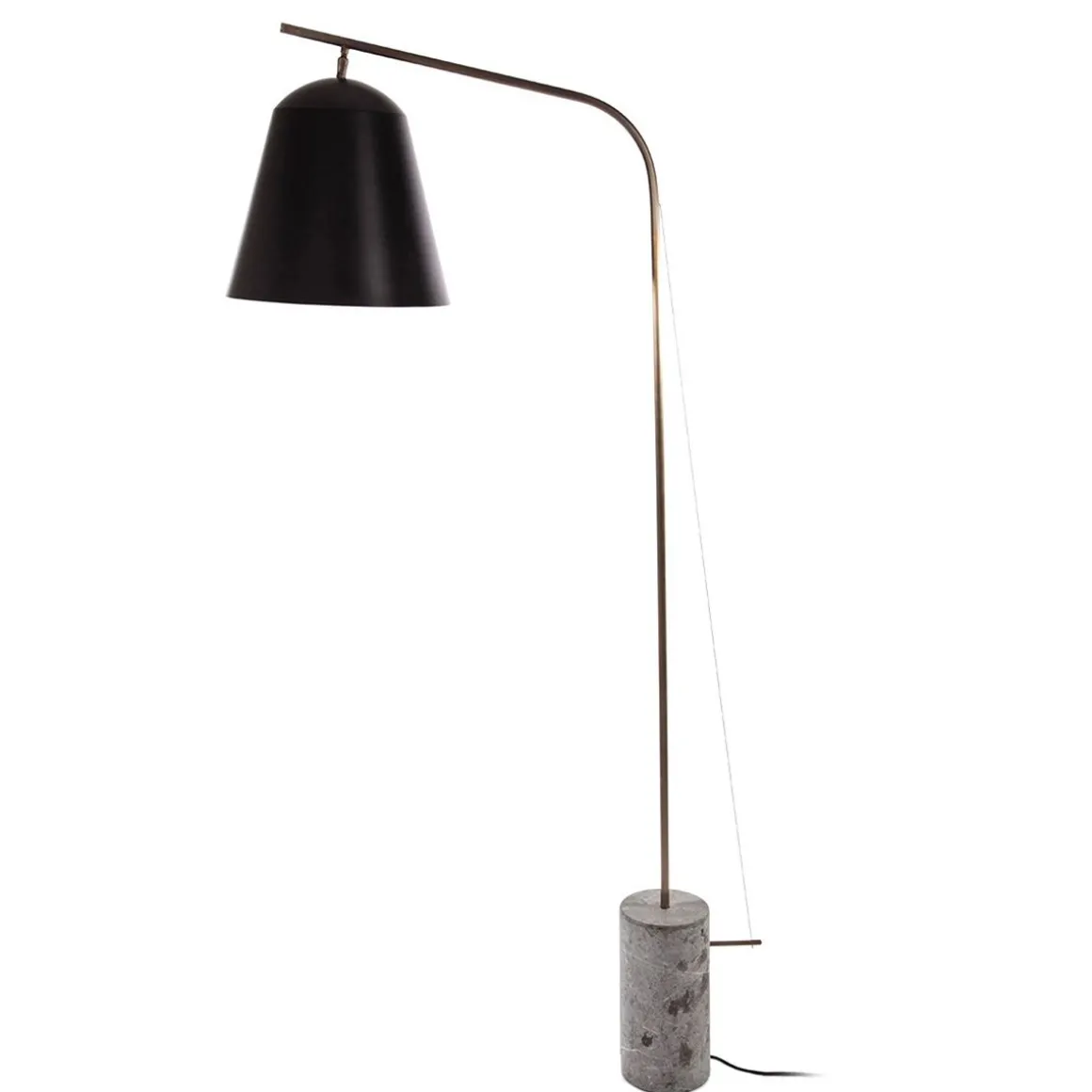 Noir : socle en marbre non traité, tige en laiton oxydé et abat-jour en aluminium peint en noir