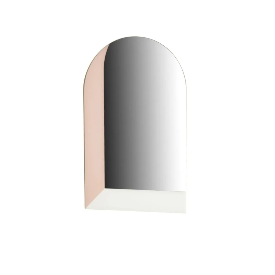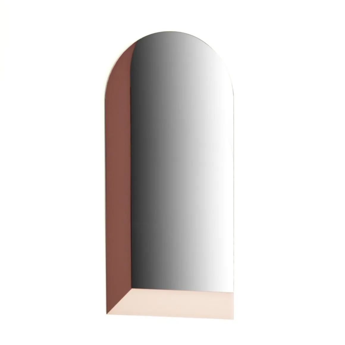 Ces miroirs sont inspirés de l’architecture métaphysique de l’architecture, des chateaux et anciennes fenêtres. Deux puissantes lignes de couleurs sont imprimées sous le verre et reflètent la lumière pour créer un aspect de perspective. Disponible en deux tailles et couleurs différentes, ils peuvent être disposés seul ou en groupe.