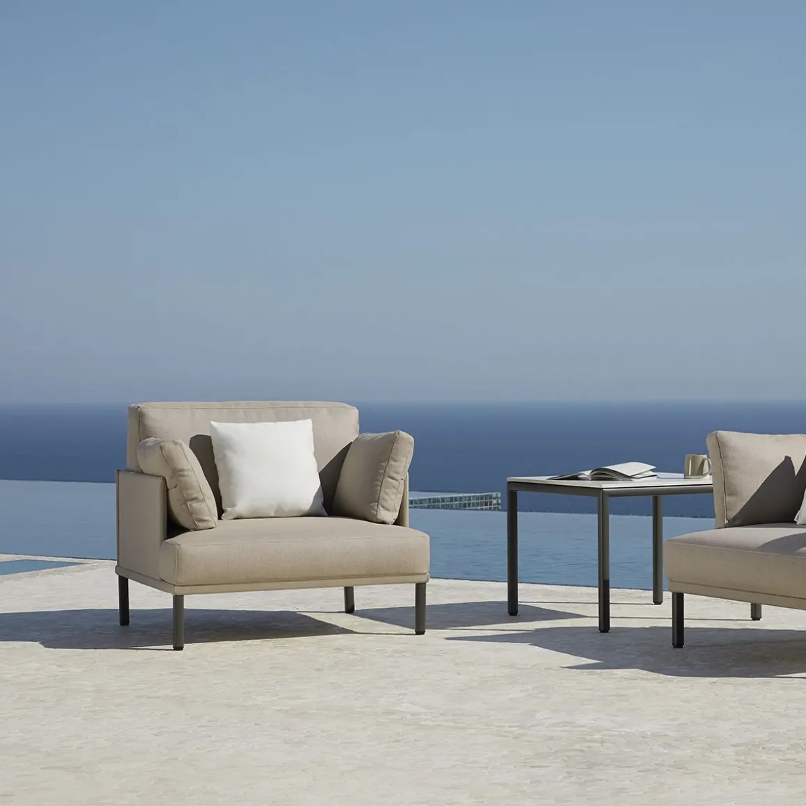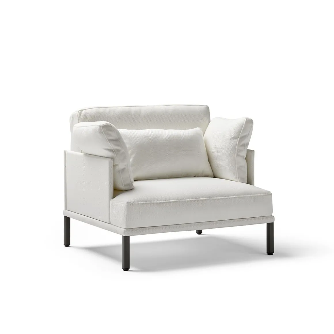 « Avec Long Island, mon objectif a été de la rendre désirable grâce à une conception axée sur les détails et bien finie, à l’image d’un meuble d’intérieur », explique le designer Christophe Pillet. Il ajoute : « j’ai cherché à créer la sensation que ces pièces existent depuis toujours ». Des formes droite et des lignes fines définissent la silhouette de cette collection modulaire de canapé d’extérieur. Dotées d’une grande simplicité chercher « à apporter une élégance universelle et un grand confort », avoue C. Pillet. Cette collection chercher à devenir un nouveau classique. Les treize pièces qui la composent sont complétées par trois tables avec une structure en aluminium.