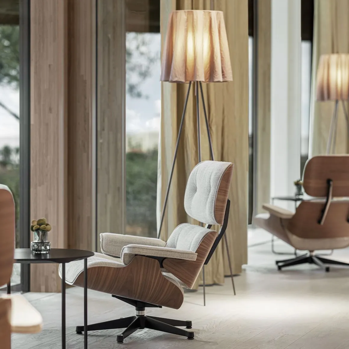« Et si nous modernisions le traditionnel fauteuil club anglais ? » Cette question, posée par Charles Eames, marque le point de départ de la création du Lounge Chair, un processus qui a duré plusieurs années. Cette création devait répondre aux exigences d’un siège généreux qui off re un confort absolu allié à une qualité du plus haut niveau, tant dans les matériaux que dans la fabrication. Le fauteuil conçu par Charles et Ray Eames en 1956 a défi ni de nouvelles références : il est non seulement plus léger, plus élégant et plus moderne que les fauteuils club traditionnellement massifs, il est également plus confortable. Ces qualités ont fait du Lounge Chair une des créations les plus connues de Charles et Ray Eames, lui décernant un statut de classique dans l‘histoire du mobilier moderne.