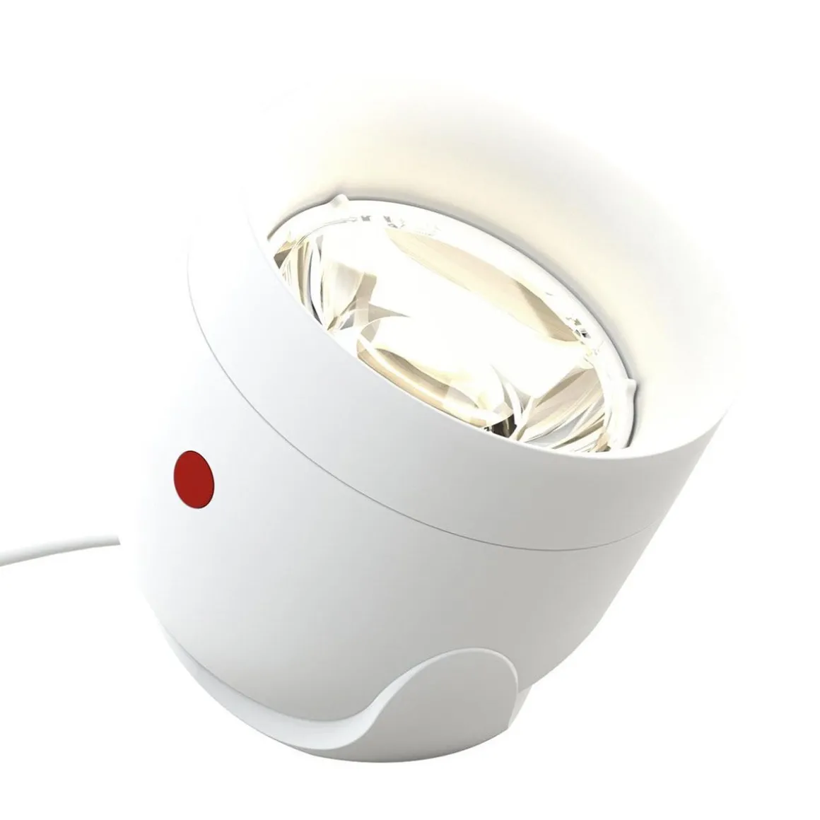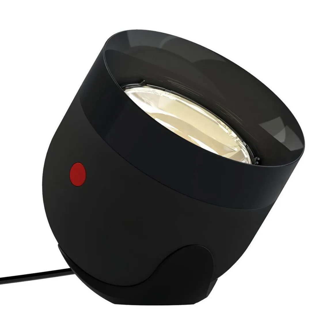 La lampe de table LED Love Focus , d’un diamètre 9 cm, emprunte l’allure d’un projecteur tout en courbes alliant métal et verre. Alimentée par une unité LED FIX de 11 watts comprise, elle se distingue par un faisceau lumineux qui s’élargit ou rétrécit par simple rotation du réflecteur selon un angle variant de 35 à 80 °. Sa forme en demi-cône et sa position inclinée en font une lampe aussi graphique que ludique à poser sur un plateau de bureau ou une table de salon.