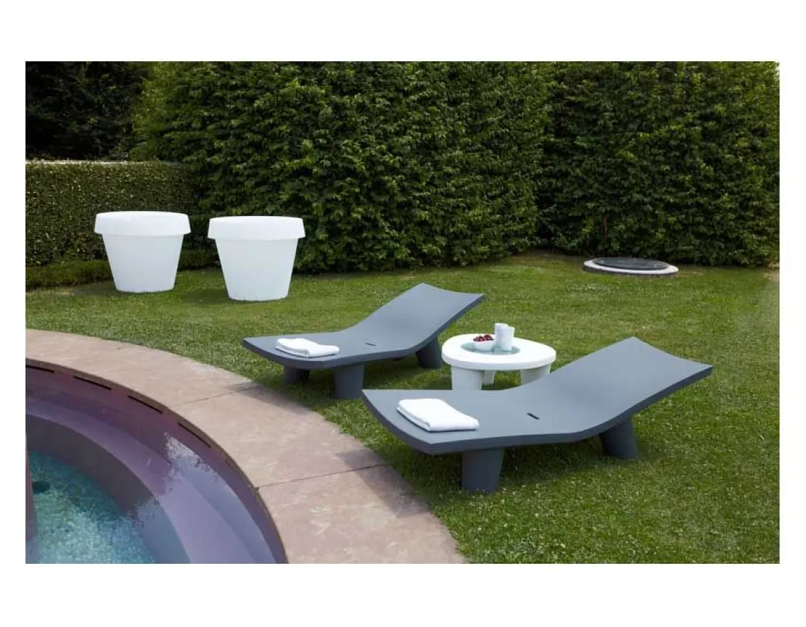Low Lita Lounge est la nouvelle chaise longue SLIDE signée par Paola Navone. C’est une chaise longue au design fluide et léger, ces belles courbes lui permet de vous accueillir et de vous proposer une assise confortable et conviviale. Paolo Navone s’est amusé à créer un beau contraste entre l’assise fine et les quatres pieds imposants pour finalement créer une chaise longue stable et équilibré. Parfait pour les terrasses ou jardin.