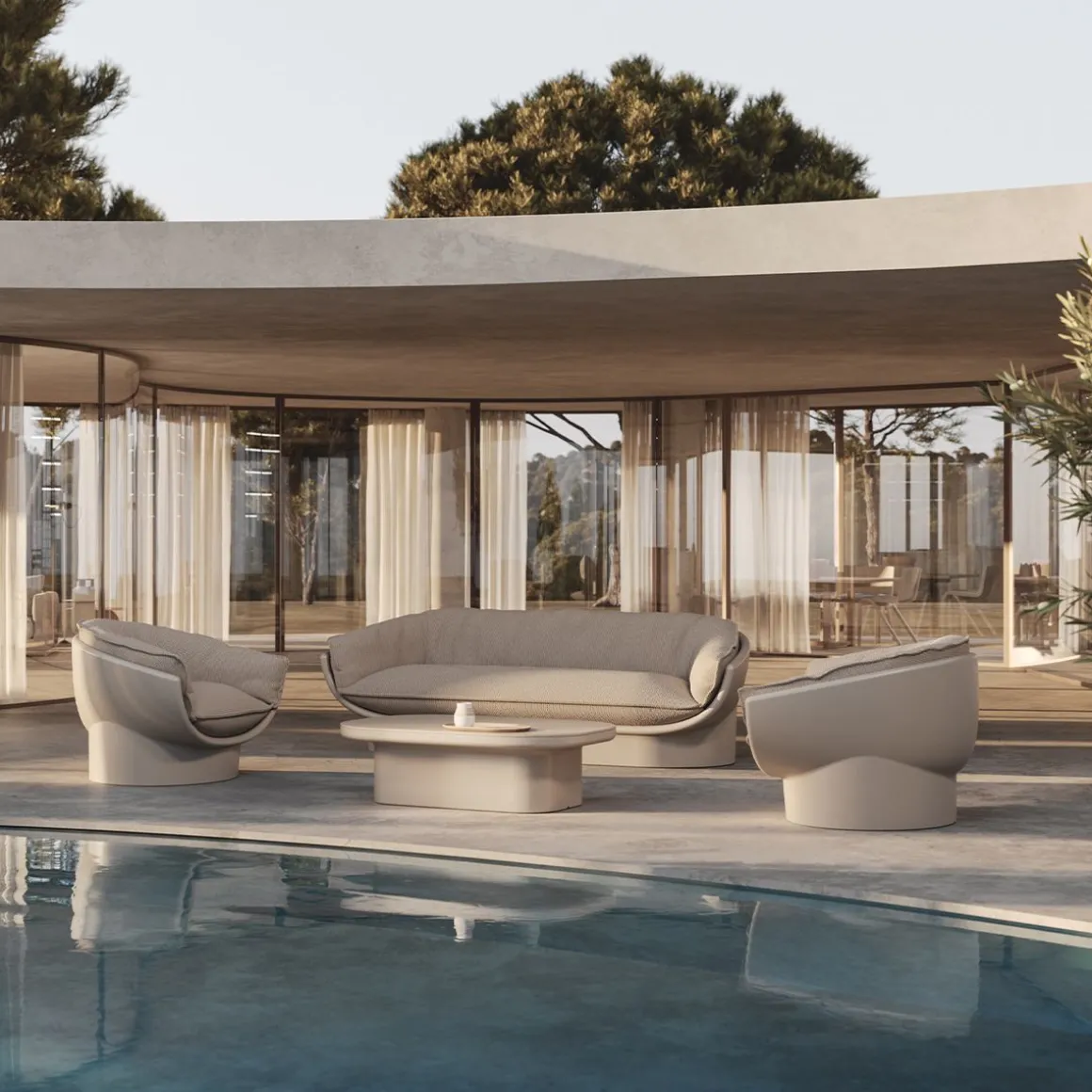 Le fauteuil Luna, conçu par Ramón Esteve, redéfinit le luxe extérieur grâce à sa structure en polyéthylène 100 % recyclable et à ses techniques avancées de rotomoulage. Ses coussins, en mousse de polyuréthane haute densité et fibres synthétiques, offrent un confort inégalé.