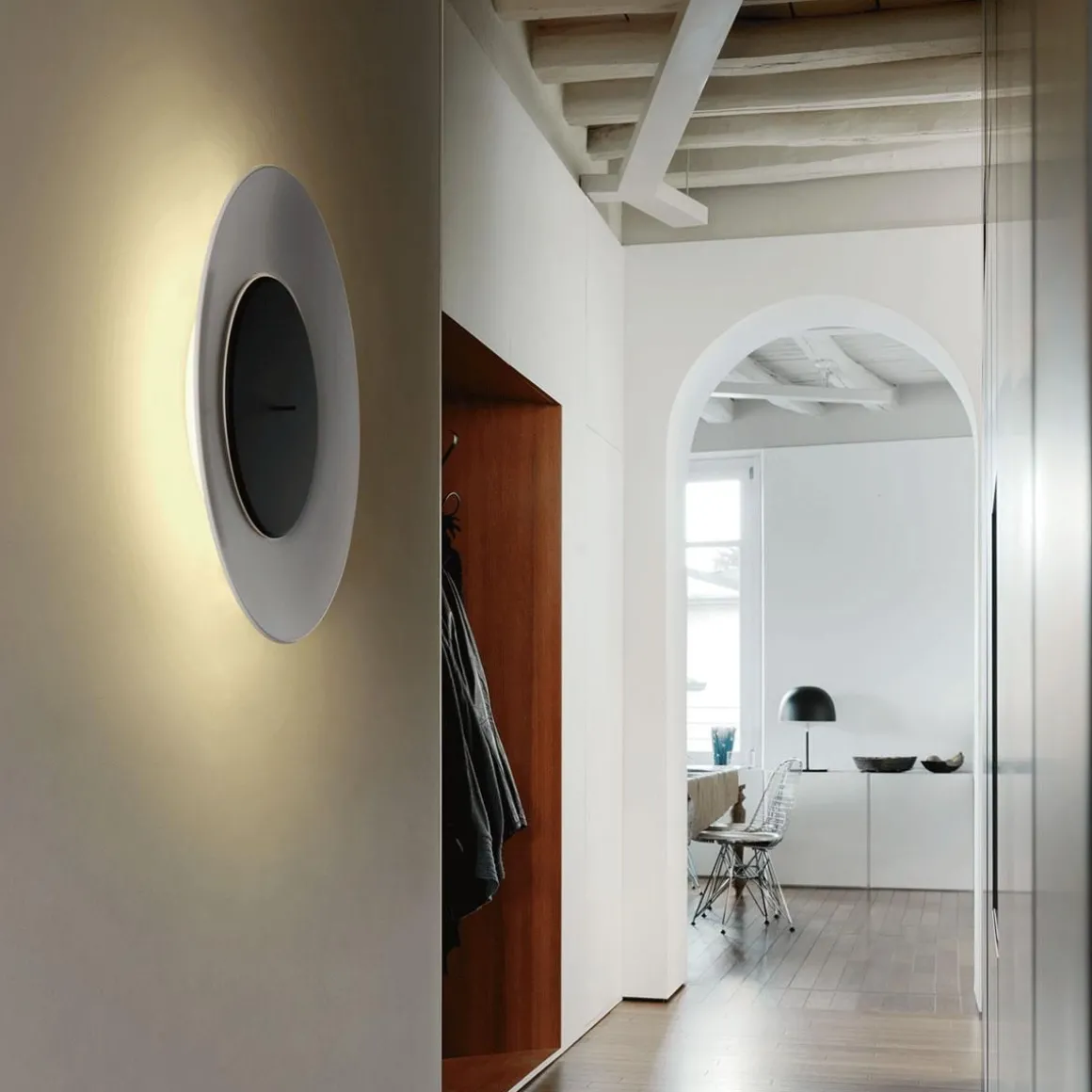 Imaginée par le designer français Ferréol Babin, l’applique lunaire crée un effet lumineux surprenant, inspiré du phénomène produit par une éclipse. Elle se compose de deux disques bien distincts : le premier central étant un réflecteur en aluminium blanc alors que le second joue le rôle de diffuseur grâce à un matériau en méthacrylate. En changeant la position de ce disque, on peut moduler l’intensité lumineuse, et créer différents effets : exactement comme lors d’une éclipse ! Innovante et très graphique, l’applique Lunaire vous permet d’interagir avec la lumière pour faire évoluer la puissance du flux lumineux selon vos besoins. Cette applique tendance est à la fois fonctionnelle, design et sensible, elle donne envie de contempler la lumière émise, d’observer les nuances et les ombres qu’elle génère.